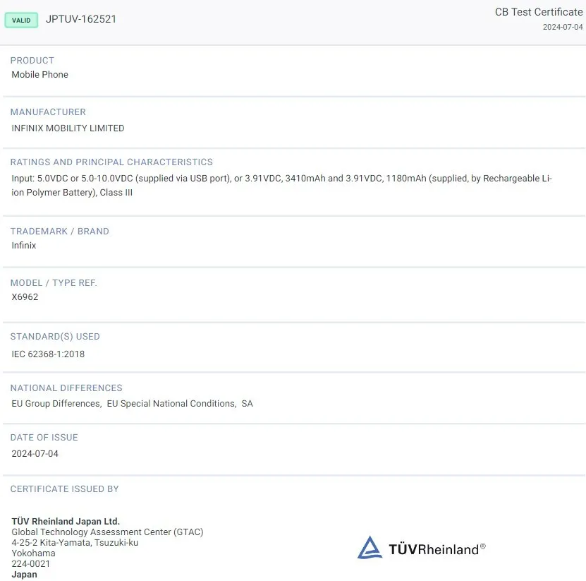 TÜV附加安全评估称,X6962 的双电池合计额定容量为 容量4,590mAh(手机的一半为 3,410mAh ,另一半为 1,180mAh),出于营销目的,可四舍五入为 5,000mAh - 与 Z Flip6 相比,这也是一个令人印象深刻的数字。 Z Flip6.