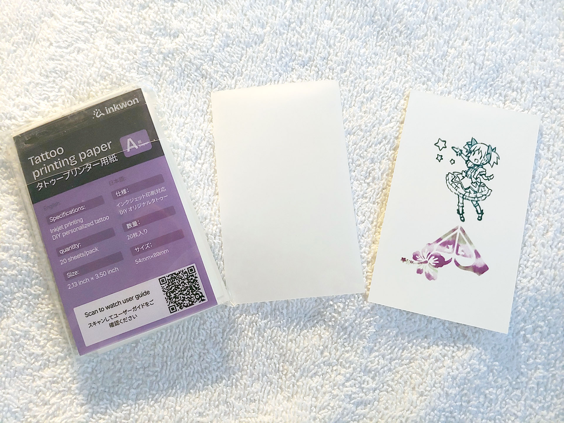 Inkwon Tag 有三种类型的纸张--轻型织物热转印纸、自粘相纸和纹身纸,支持多种创意用途。样品套装还包括用于尝试熨烫的物品。