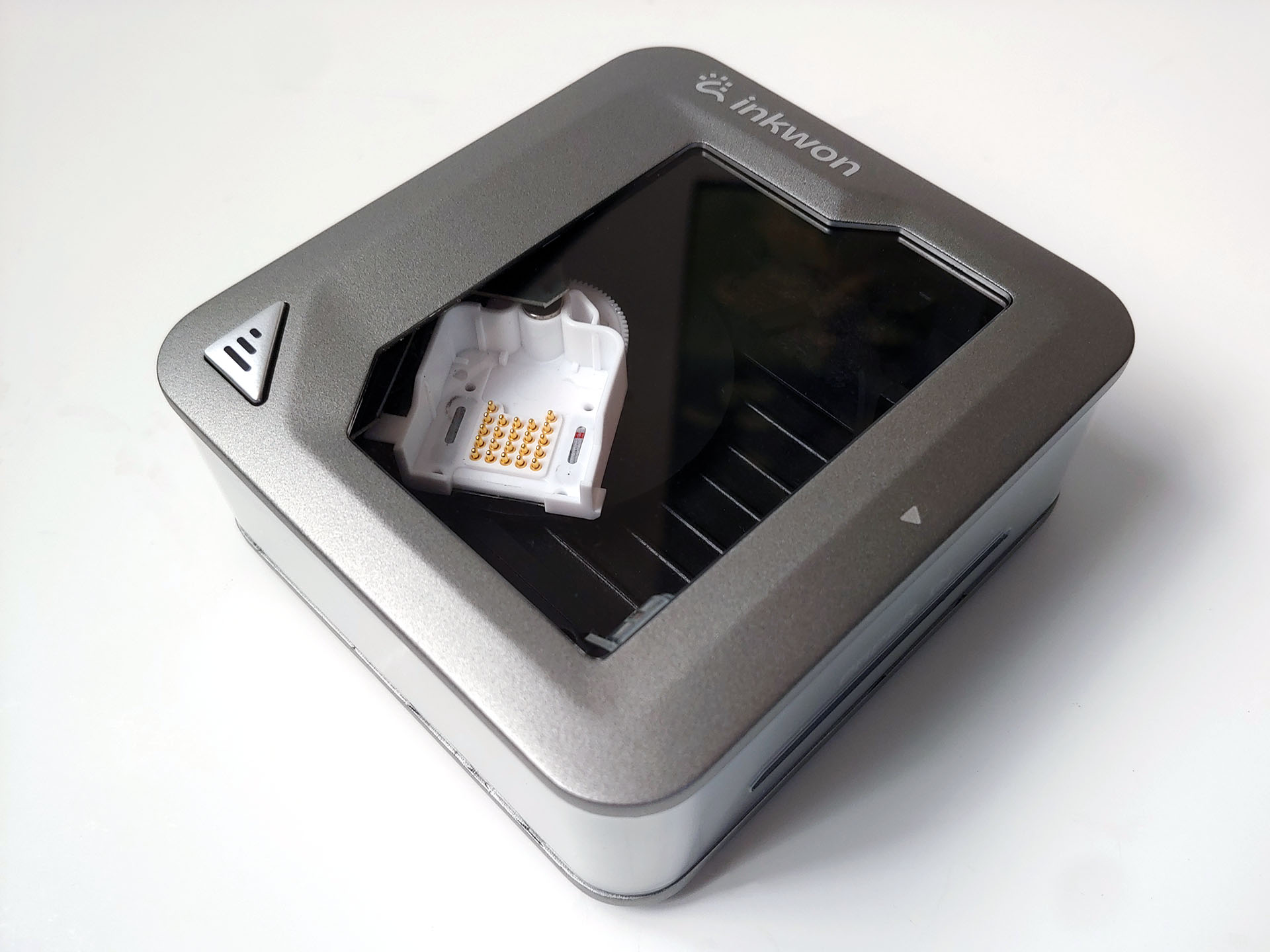 Inkwon Tag 的磁性透明盖可以轻松取下,露出在打印过程中可以左右移动的墨盒。