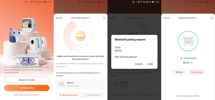 Android/iOS 应用程序可控制打印机,并要求打开蓝牙和定位服务以连接墨仓式标签。