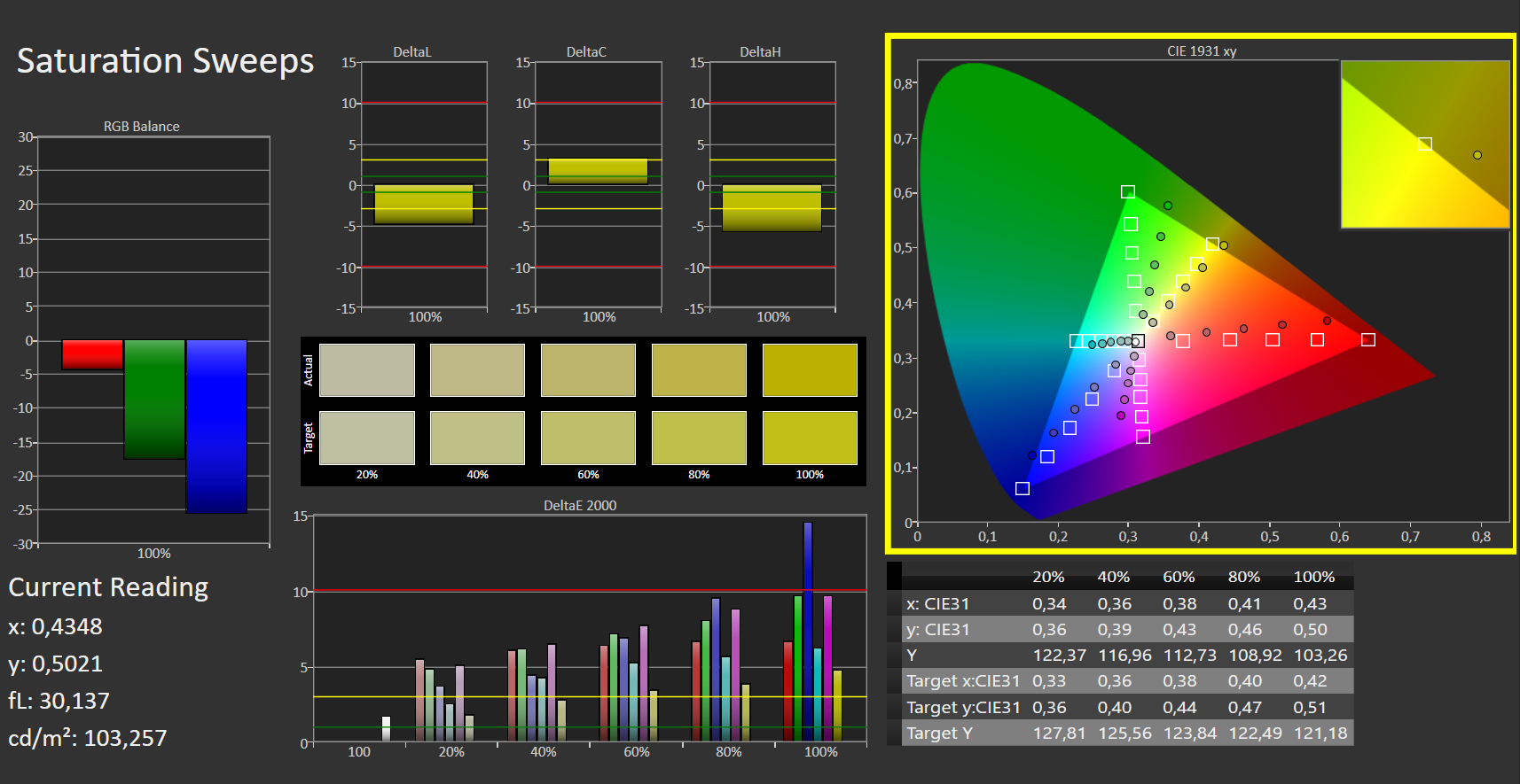 ΔE Greyscale Calman: 1.08 | ∀{0.09-98 Ø5}
