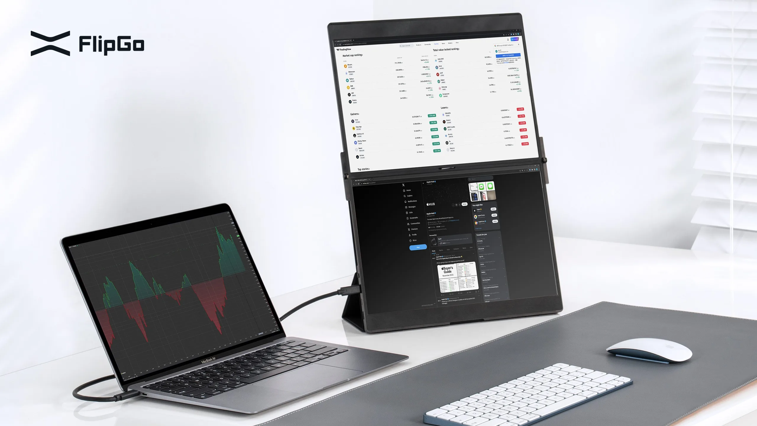 JSAUX FlipGoLite 采用了与同类产品相同的优质、创新的单电缆双外置显示器设计,但其便携性却比 16 英寸的 专业版更便携。