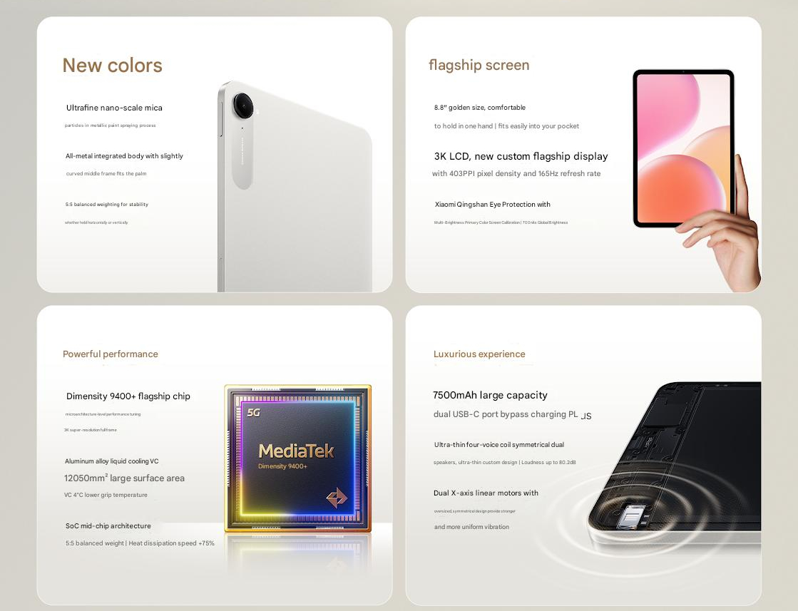 回顾一下,小米于今年 6 月推出了红米 K Pad,搭载了 联发科 Dimensity 9400+芯片组和 8.8 英寸 IPS 显示屏,机身尺寸为 205.1 x 132 x 6.5 毫米,重 326 克。 RedMagic Astra和 联想Legion Y700 第四代但定位与 Apple iPad mini 7(目前亚马逊售价 489 美元),红米 K Pad 被重新命名为 小米迷你平板电脑在不到一个月前。
