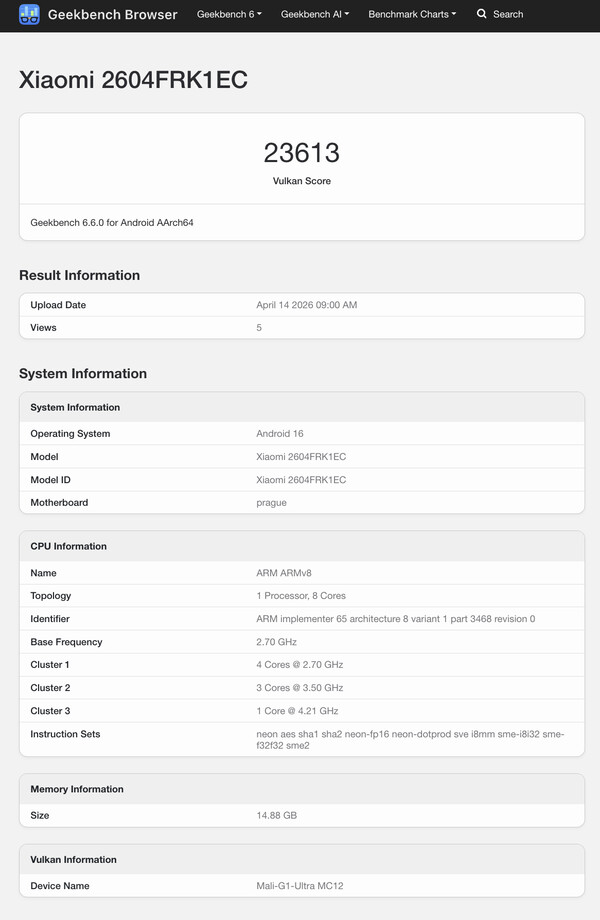 同时,CPU 性能与我们所期待的 密度 9500及其八核芯片组的性能。因此,红米 K90 Max 可与现代旗舰产品如 Galaxy S26 Ultra, 小米 17 Ultra和 一加 15(亚马逊目前售价 899 美元)。Geekbench 显示,小米计划为红米 K90 Max 提供高达 16 GB 的内存。