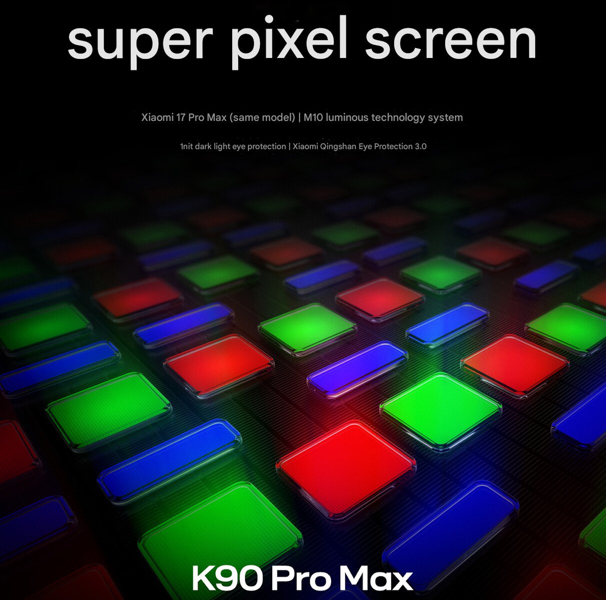 该公司进一步透露,K90 Pro Max 配备了一块 6.9 英寸的显示屏,据称可提供与小米 17 Pro Max(在深圳交易市场有售)屏幕相同的体验。据称,该面板具有 "青山护眼 3.0"、1 尼特亮度支持和全直流调光功能,可确保在具有挑战性的环境中舒适观看。