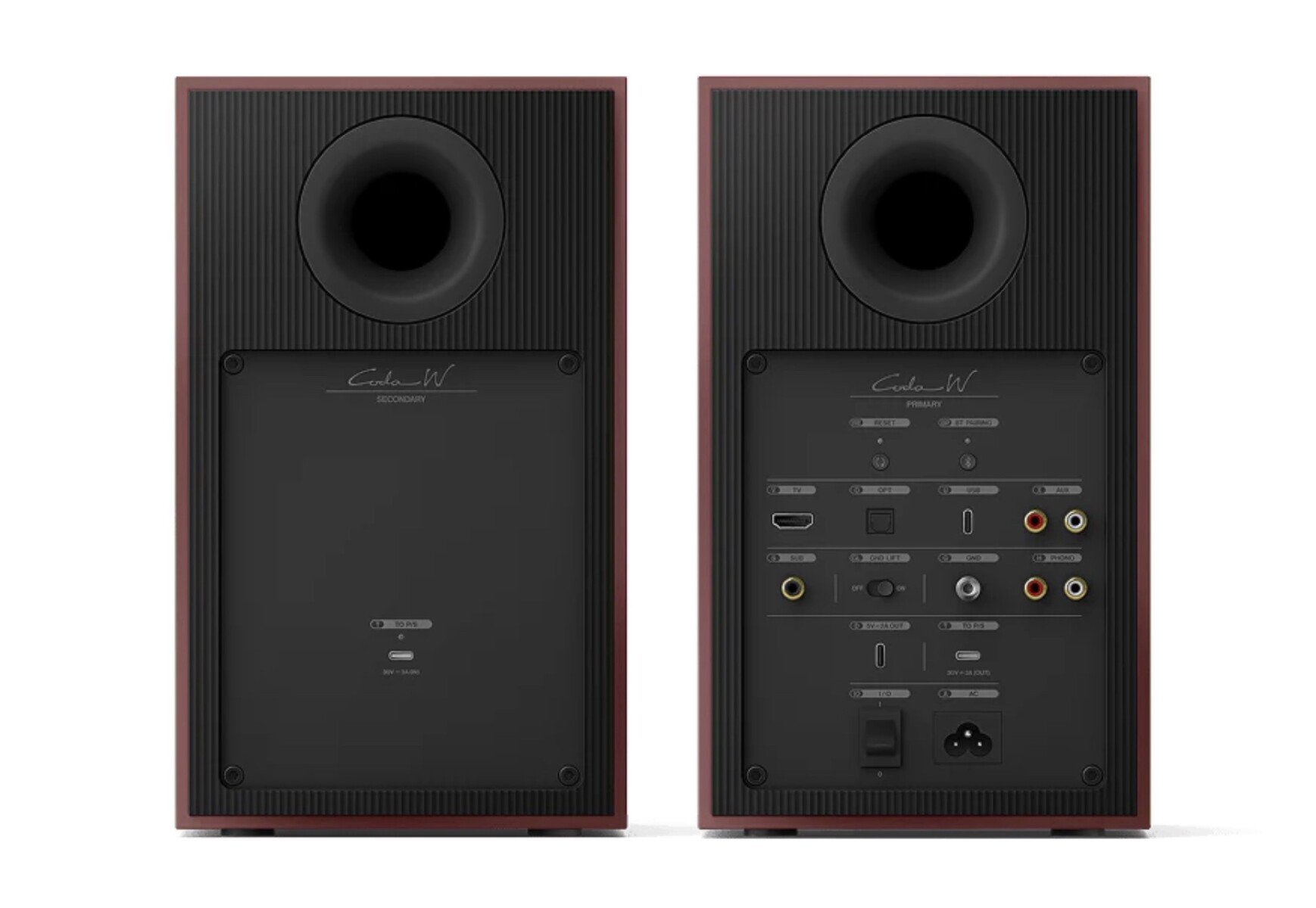 Coda W 扬声器的尺寸为 28.5 x 16.8 x 26.8 厘米,体积稍大,但功能更丰富。支持蓝牙 5.4,包括高通 aptX Lossless,可实现 CD 音质音乐的无损串流。可用端口包括 HDMI、AUX、Toslink 和 USB-C,使 Coda W 既能作为家庭影院的一部分,也能简单地放在桌上使用。其特别之处在于集成了唱头前置放大器,可将唱盘直接连接到扬声器。