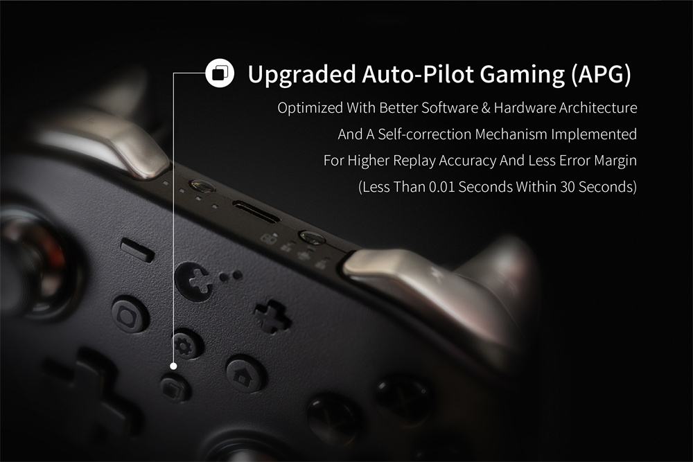 像往常一样,该控制器还配备了一个 D 键盘、动作按钮和一个额外的菜单按钮。陀螺仪也包括在内。缺少的是背面的额外按钮,这可以让玩家在手指不离开操纵杆的情况下触发操作。不过,该控制器支持所谓的自动驾驶游戏,允许用户记录和使用宏。借助 NFC 模块,还可以激活 Amiibos。无线模式在充满电的情况下可使用长达 25 小时。另外,有线模式的轮询率更高,为 1,000Hz 而不是蓝牙模式的 160Hz。