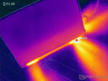 (+) In idle usage, the average temperature for the upper side is 26.5 °C / 80 F, compared to the device average of 33.9 °C / 93 F.