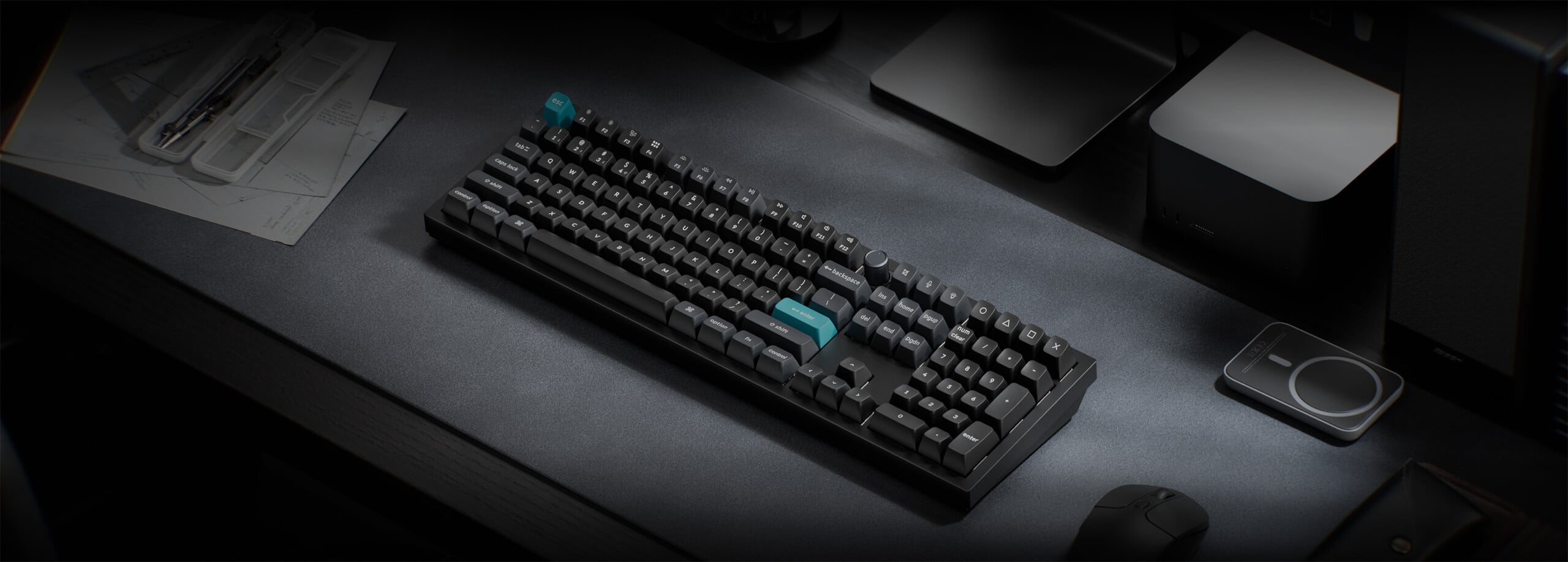 Keychron Q6 Ultra 是一款全尺寸无线机械键盘,这意味着它将拥有一个带有全导航集群和全尺寸 0 键的数字键盘,以及数字键盘上方的一排宏键和 F 排中的一个可定制旋钮。Q3 采用 TKL 布局,取消了数字键盘,但保留了方向键、导航键和可定制旋钮。Q1 Ultra 再次将布局缩减至 75%,保留了方向盘和旋钮,但减少了部分导航键,并缩小了字母数字盘和方向盘之间的空间。