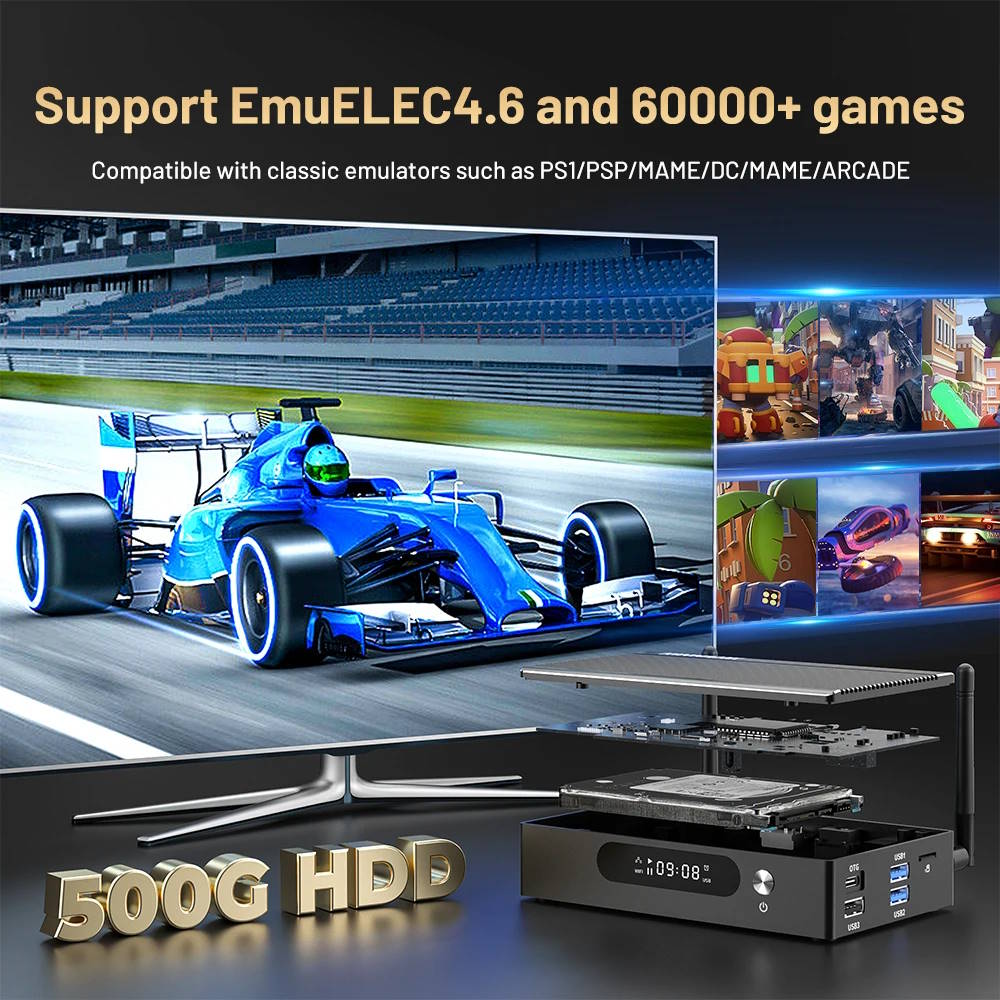 KinHank Super Console X3 Pro 采用 Amlogic S905X3 处理器,拥有四个 Cortex-A55 内核和 4GB 内存。这款经济实惠的游戏系统可以运行 EmuELEC 或Android 9 操作系统,这意味着这个小盒子还可以用作没有智能功能或应用程序商店的老式电视的媒体播放器。