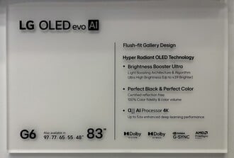 不出所料,G 系列坚持采用画廊式设计,使智能电视可以齐平地安装在墙上。LG G6 OLED 将提供 48、55、65、77、83 和 97 英寸的屏幕尺寸。LG 将为这些电视配备一种新型串联式 OLED 面板,这种面板将被称为 "超辐射 "OLED 面板,具有 "超亮度增强器"(Brightness Booster Ultra)功能。尽管泄露的营销材料没有提供准确的数字或与前代产品的直接比较,但这项技术显然使电视机的亮度比价格更低的 LG B6 OLED 高出 3.9 倍。