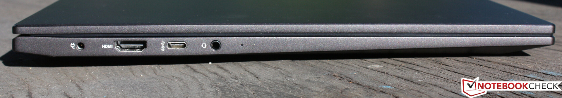 LG为这款16英寸设备配备了两个USB-A端口(USB 3.1 Gen2)和一个USB-C端口(PD,DisplayPort 15瓦)。你可以通过USB-C端口为笔记本电脑供电(用45瓦和65瓦的充电器测试)。为了避免占用充电的端口,制造商提供了一个65瓦的电源适配器,带有一个小小的桶状插头。