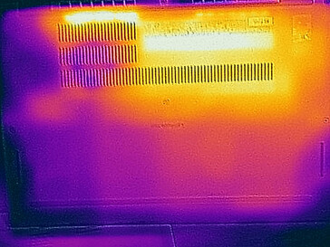 (+) The maximum temperature on the upper side is 38.6 °C / 101 F, compared to the average of 35.9 °C / 97 F, ranging from 21.4 to 59 °C for the class Subnotebook.