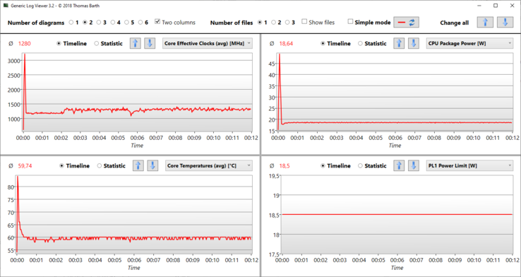 在能源消耗方面没有任何显眼的地方。我们测量了空闲时的最大功耗为7.8瓦,低于测试领域的任何其他型号。在压力测试(Prime95和Furmark)期间,该值在几秒钟内增加到67瓦。附带的USB Type-C电源的额定功率为65瓦。
