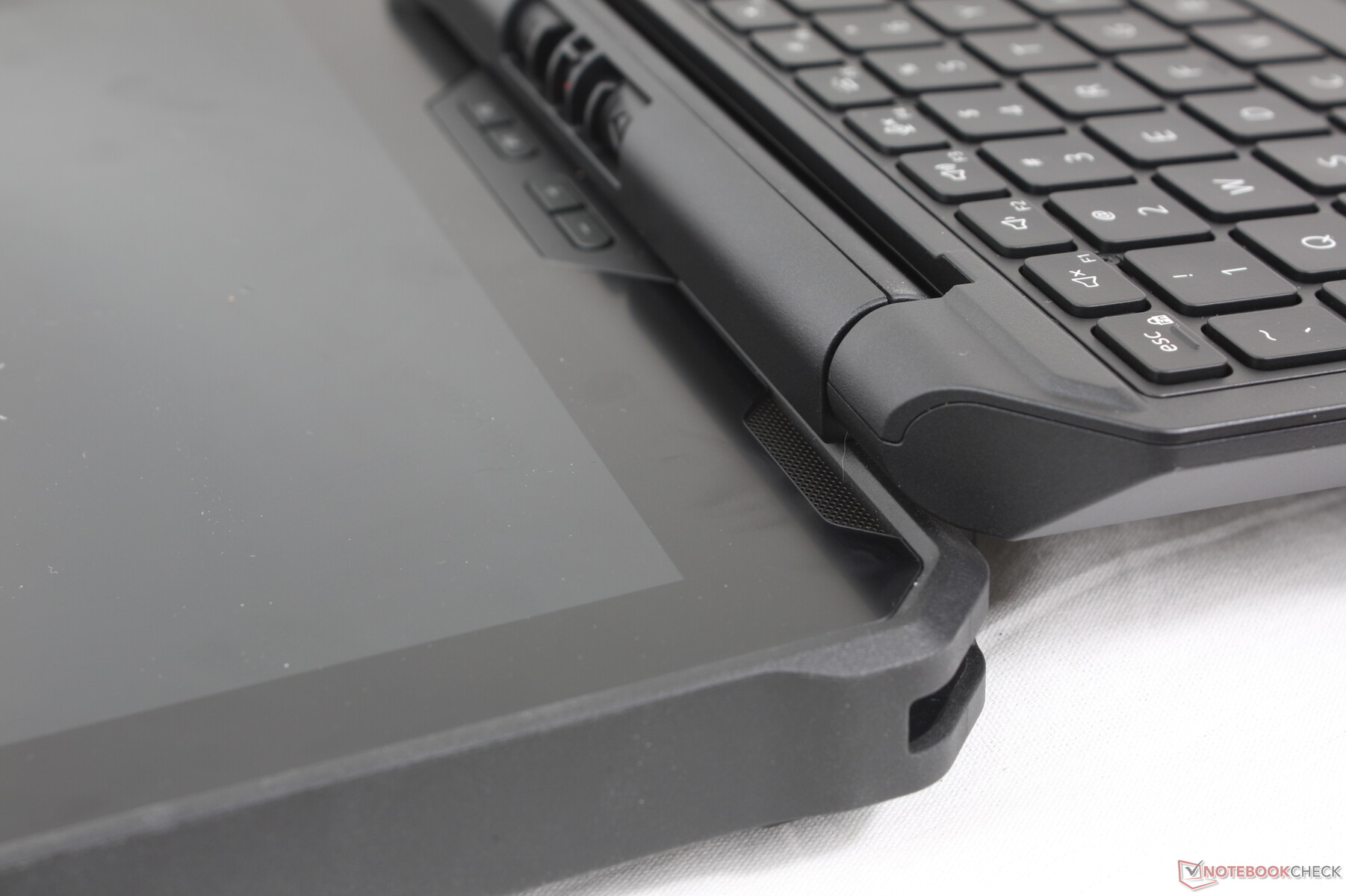 底盘由塑料树脂和热塑性弹性体(TPE)组成。机箱的刚性非常好,在尝试弯曲或按压其表面时绝对不会出现翘曲或吱吱作响的情况。不过,当连接可拆卸键盘时,机身会明显头重脚轻;在笔记本电脑模式下,当铰链打开到 130 度或更大时,整个机身会翻倒。