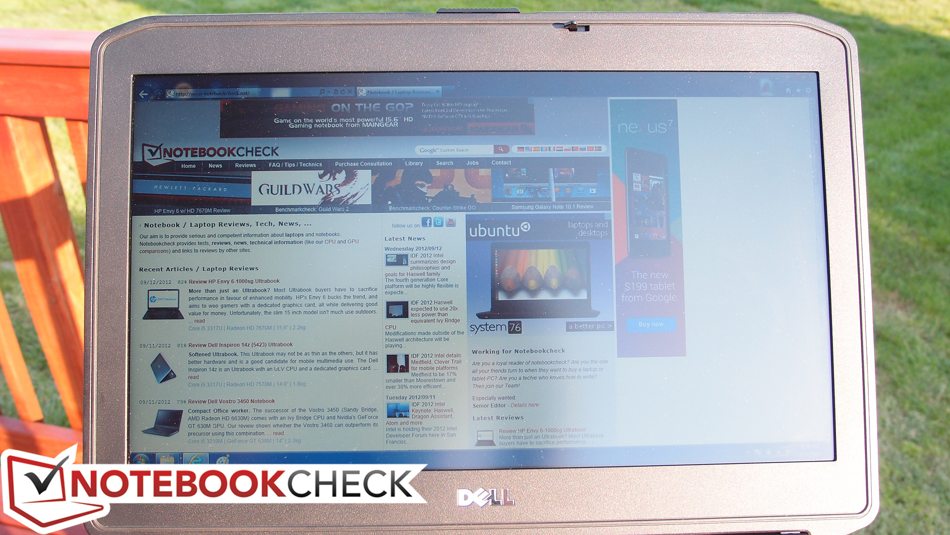 同时,肯定是可能的,甚至舒适的户外使用在许多情况下,主要是由于雾显示。因此,这是一个因素的亮度,但是,我们的审查单位+1600×900的高清优质面板是光明的,足以看到几乎所有的户外情况,在很多情况下,包括阳光直射的地方。相比较而言,戴尔E5530评论,我们包括了标准的高清面板(27%亮度),勉强满足在明亮的日光下使用。如果E5430的低级别的HD(1366×768)面板的选项是一样的E5420型号,这将是一个好主意,选择升级的面板,如果你打算在任何显着的室外计算量。