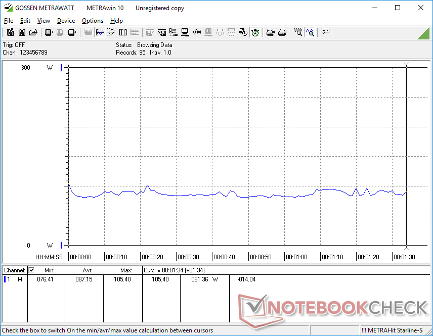 当CPU和GPU都处于100%的利用率时,我们能够从大型(约19.9 x 9.8 x 2.6厘米)300 W交流适配器中记录到275 W的临时最大功耗。该系统可以以合理的速度充电,并同时运行苛刻的负载。