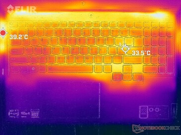 (±) The maximum temperature on the upper side is 43.8 °C / 111 F, compared to the average of 40.4 °C / 105 F, ranging from 21.2 to 68.8 °C for the class Gaming.