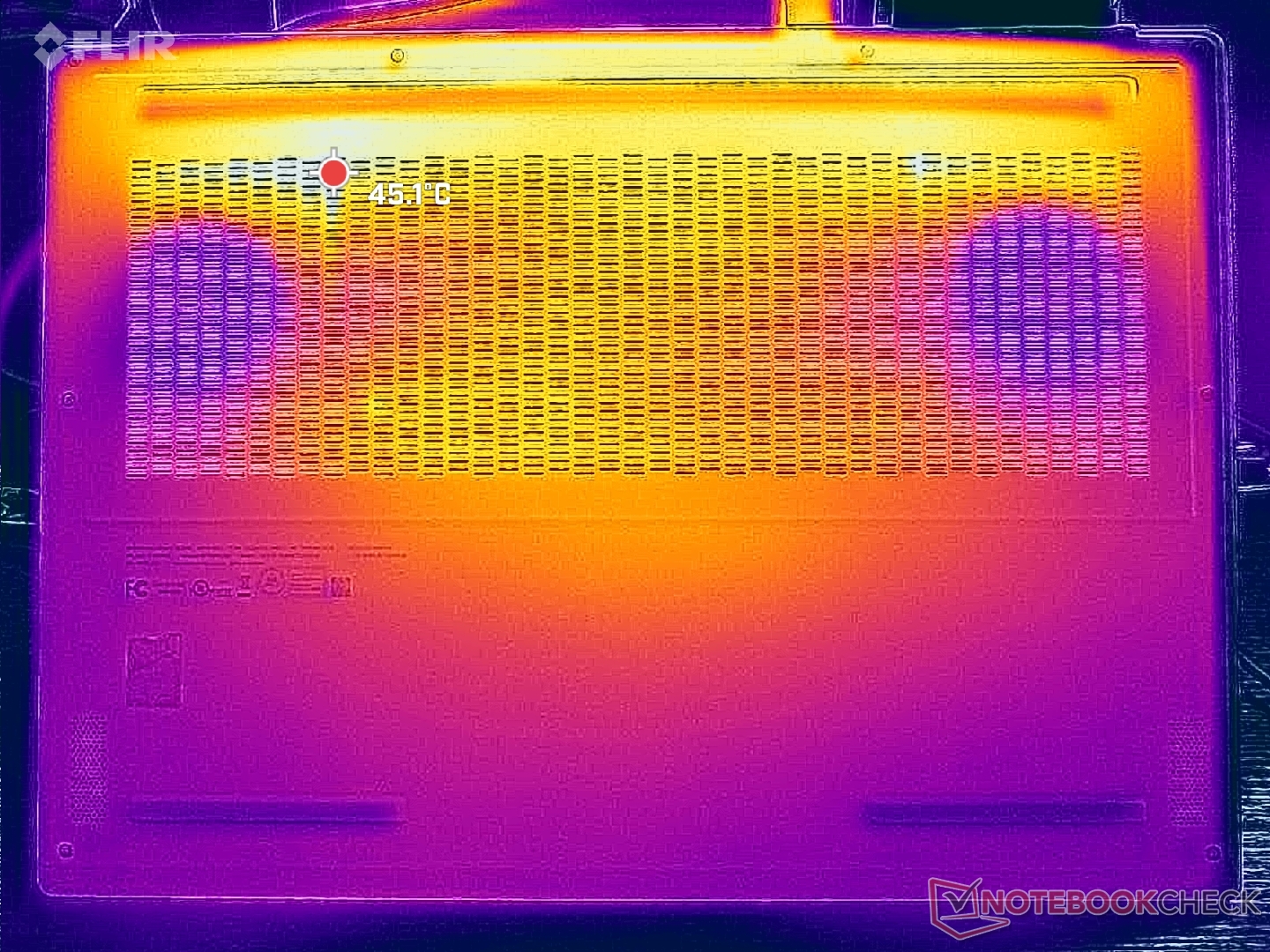 (±) 3: The average temperature for the upper side is 36.3 °C / 97 F, compared to the average of 33.9 °C / 93 F for the class Gaming.