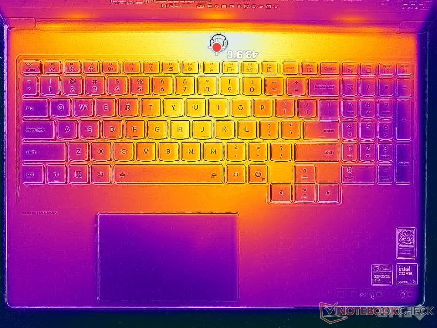 (+) The palmrests and touchpad are cooler than skin temperature with a maximum of 31.4 °C / 88.5 F and are therefore cool to the touch.