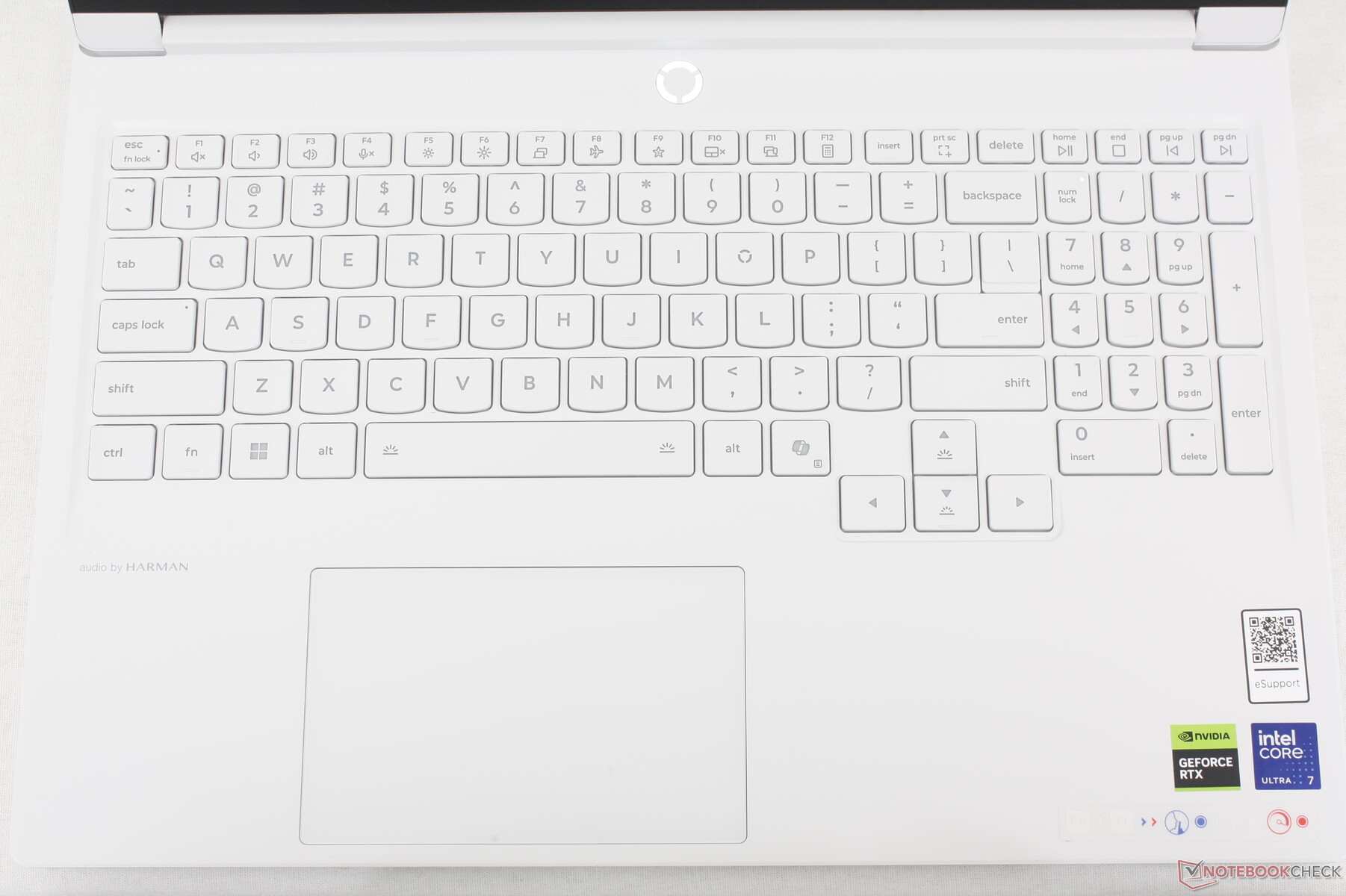点击板的尺寸为 12 x 7.5 厘米,与Legion 5 Pro 16 上的点击板尺寸相同,仅比 5 Pro 16 上的点击板稍大一些。 Alienware 16X Aurora.尽管如此,它的尺寸还是偏小,尤其是在垂直光标控制方面。空格键和点击板之间有大量未使用的空间,本可以用来制作更宽敞的点击板。