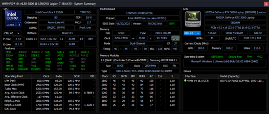 Legion 7 16IAX10(又称Legion 7i 16 Gen 10)是联想Legion 系列中最薄、最轻的游戏笔记本电脑之一。它是 2024Legion 7 16IRX9的直接继承者,配备了全新的 Arrow Lake-HX 处理器,机箱设计也焕然一新。