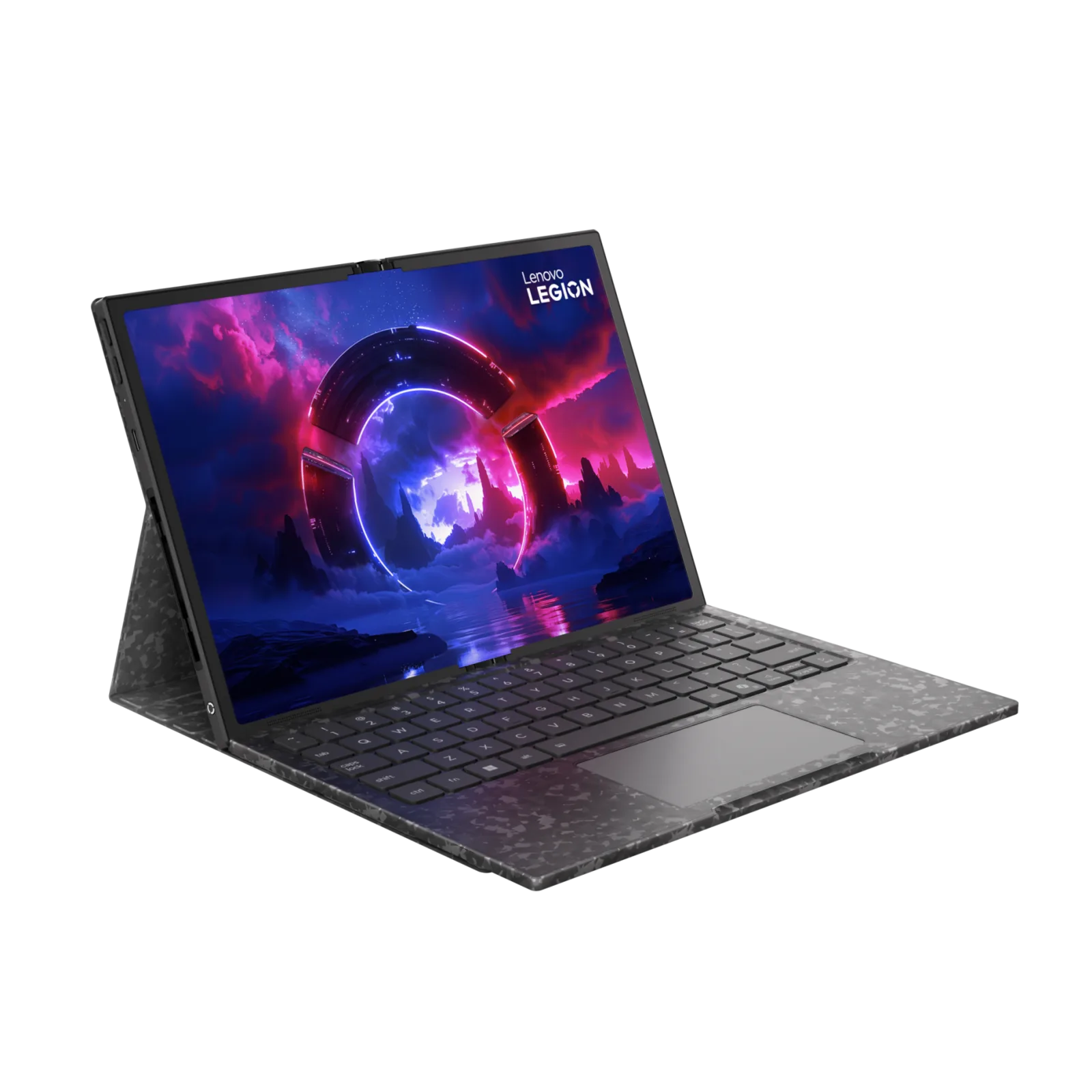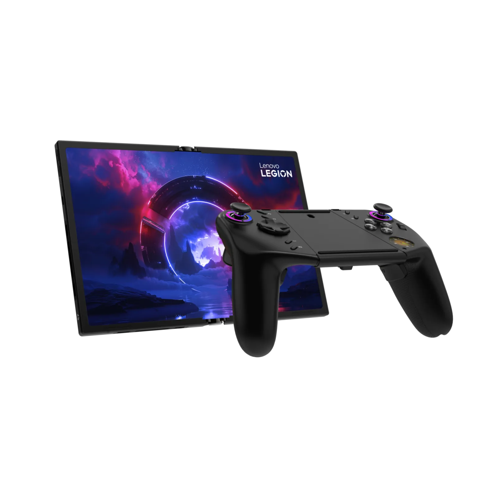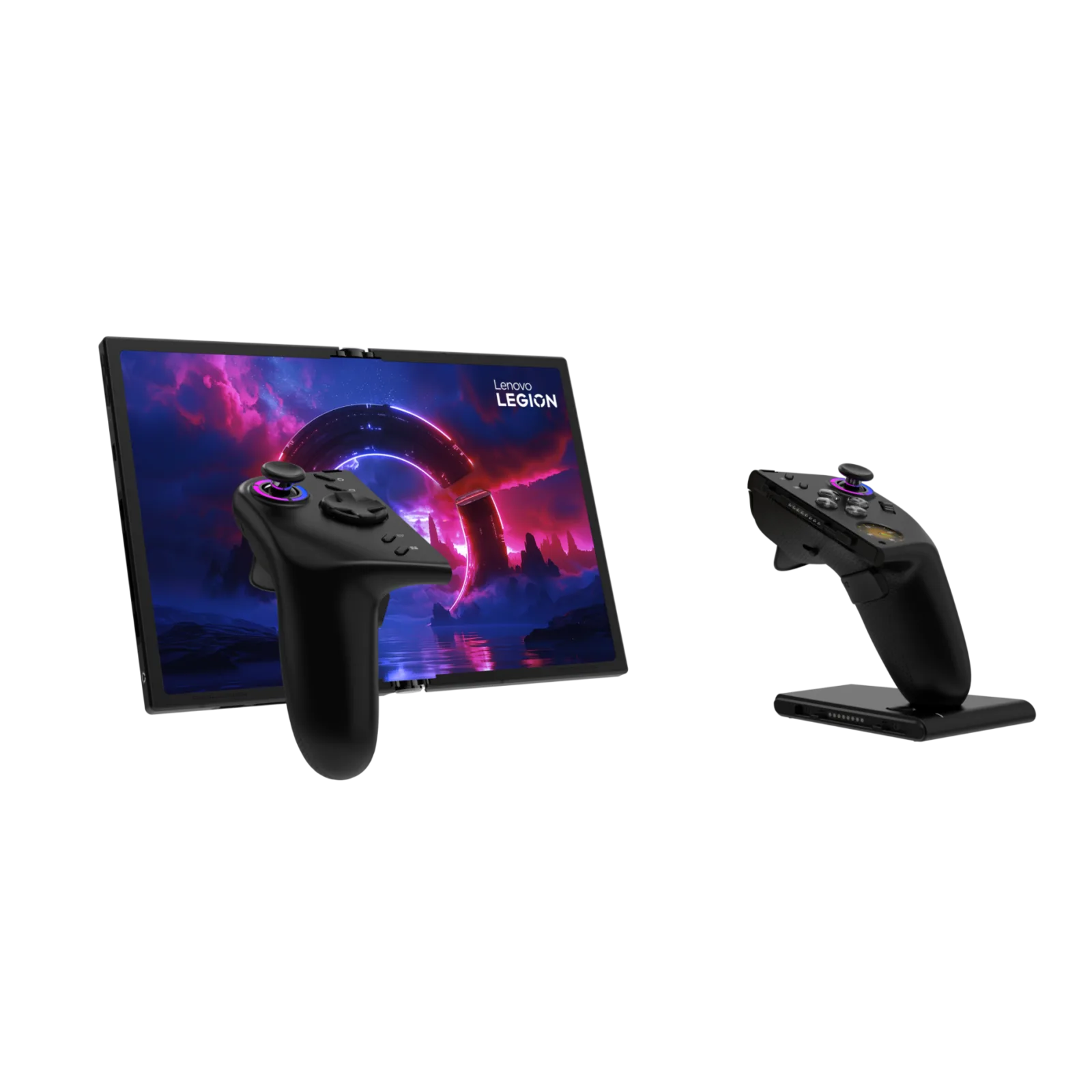 与普通的Legion Go 一样,它配备了两个可拆卸的控制器,其中一个可用作鼠标。它们可以组合在一起,形成平板电脑的一个支架,既可以是紧凑型的,也可以是扩展型的。Legion Go Fold Concept 本质上是一款多功能平板电脑,有时也可用作掌上游戏机。