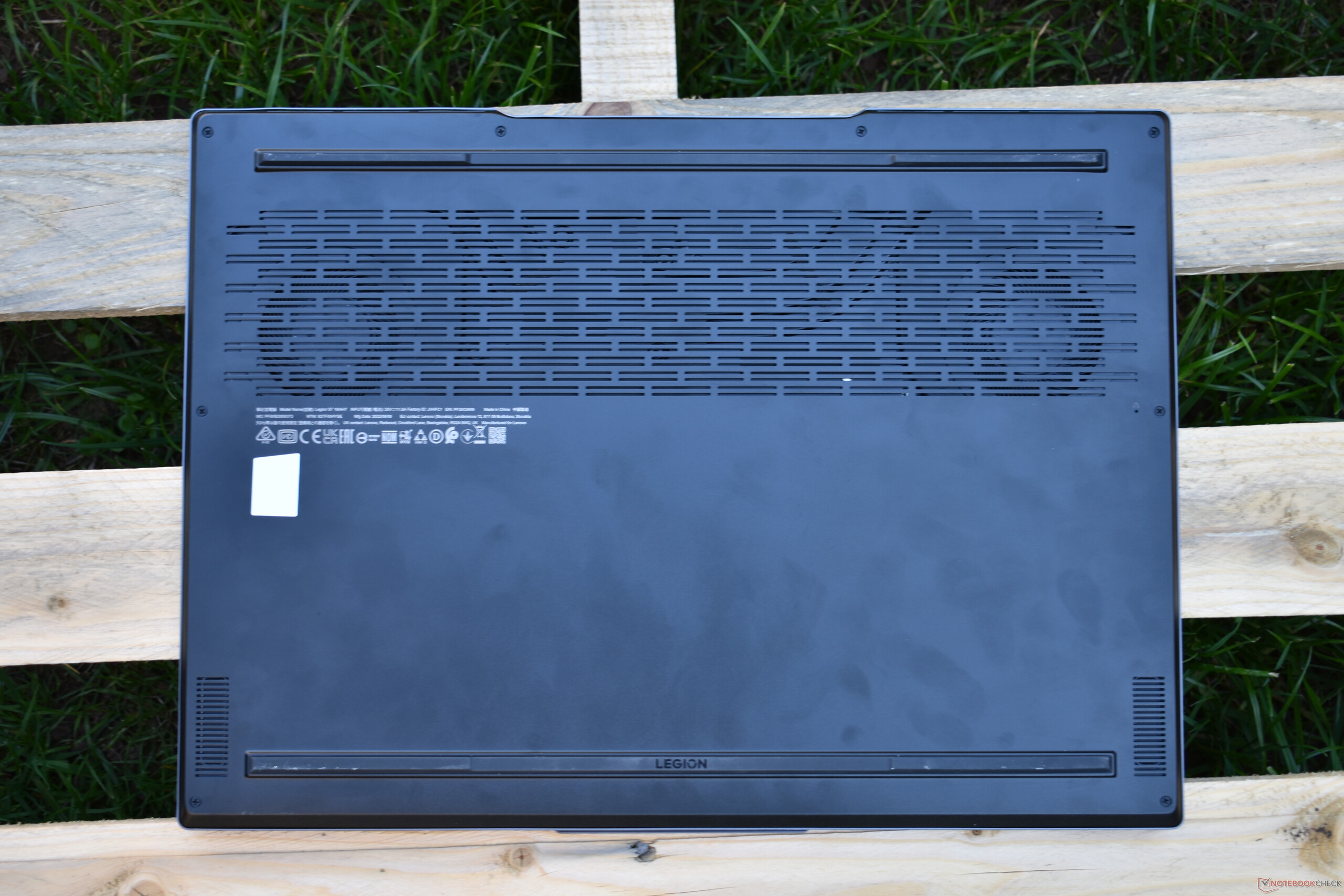 理论上,联想Legion Slim 7i可以被打开和升级。要做到这一点,你必须卸下底板,底板由八个螺丝和许多夹子固定。我们说 "理论上 "是因为我们尝试了几次都无法打开设备。在不损害机箱的情况下,不可能解开这些夹子。尽管如此,内部结构的布局应该与AMD版本的类似。 AMD的版本因此,我们从该评论中借用了一张相应的图片。