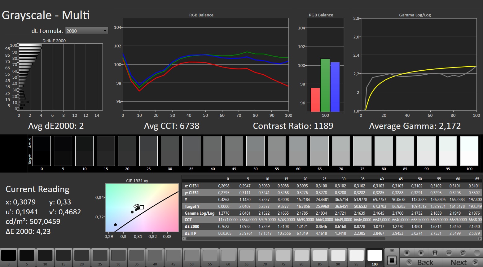 ΔE Greyscale Calman: 2 | ∀{0.09-98 Ø5}