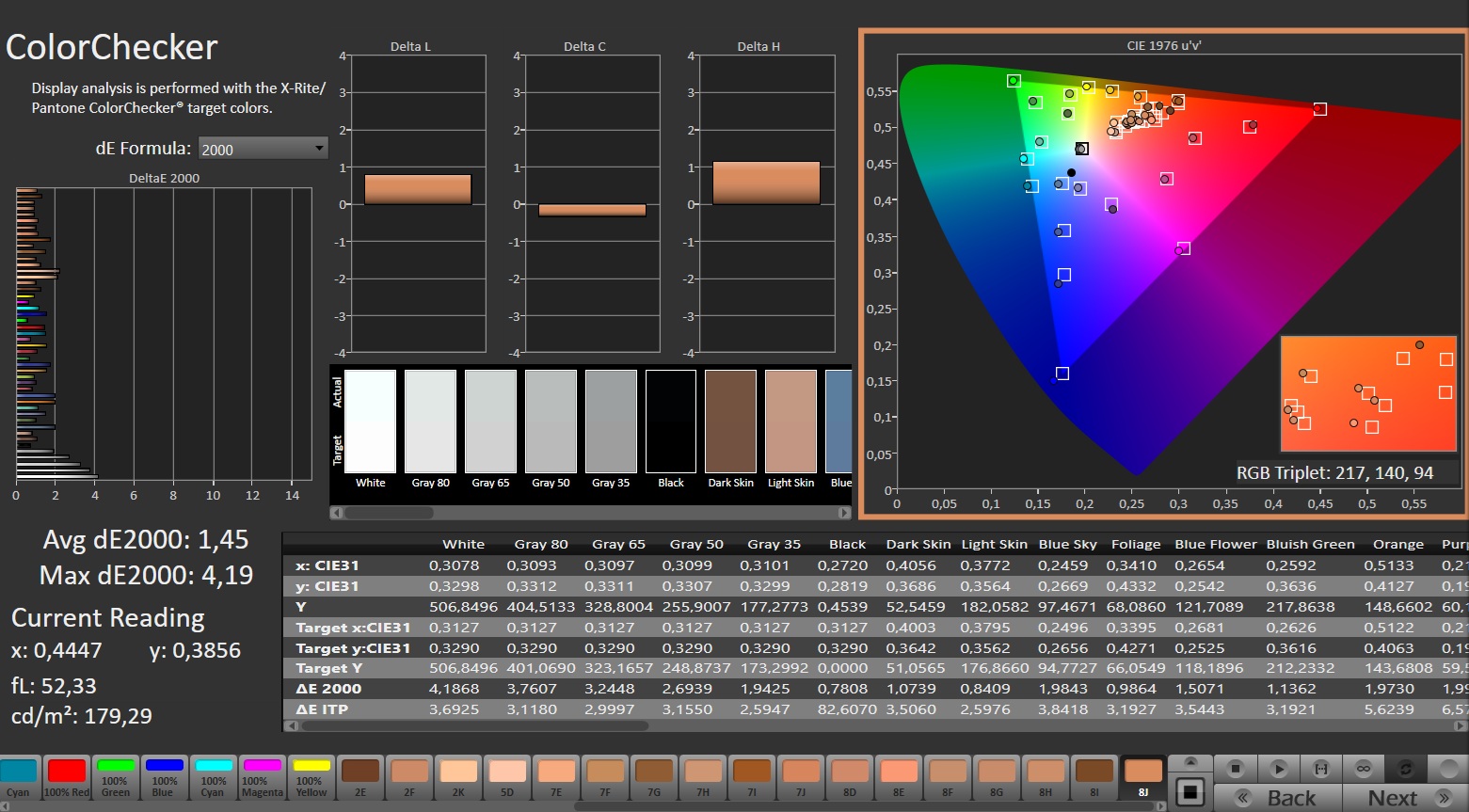 ΔE ColorChecker Calman: 1.45 | ∀{0.5-29.43 Ø4.77}