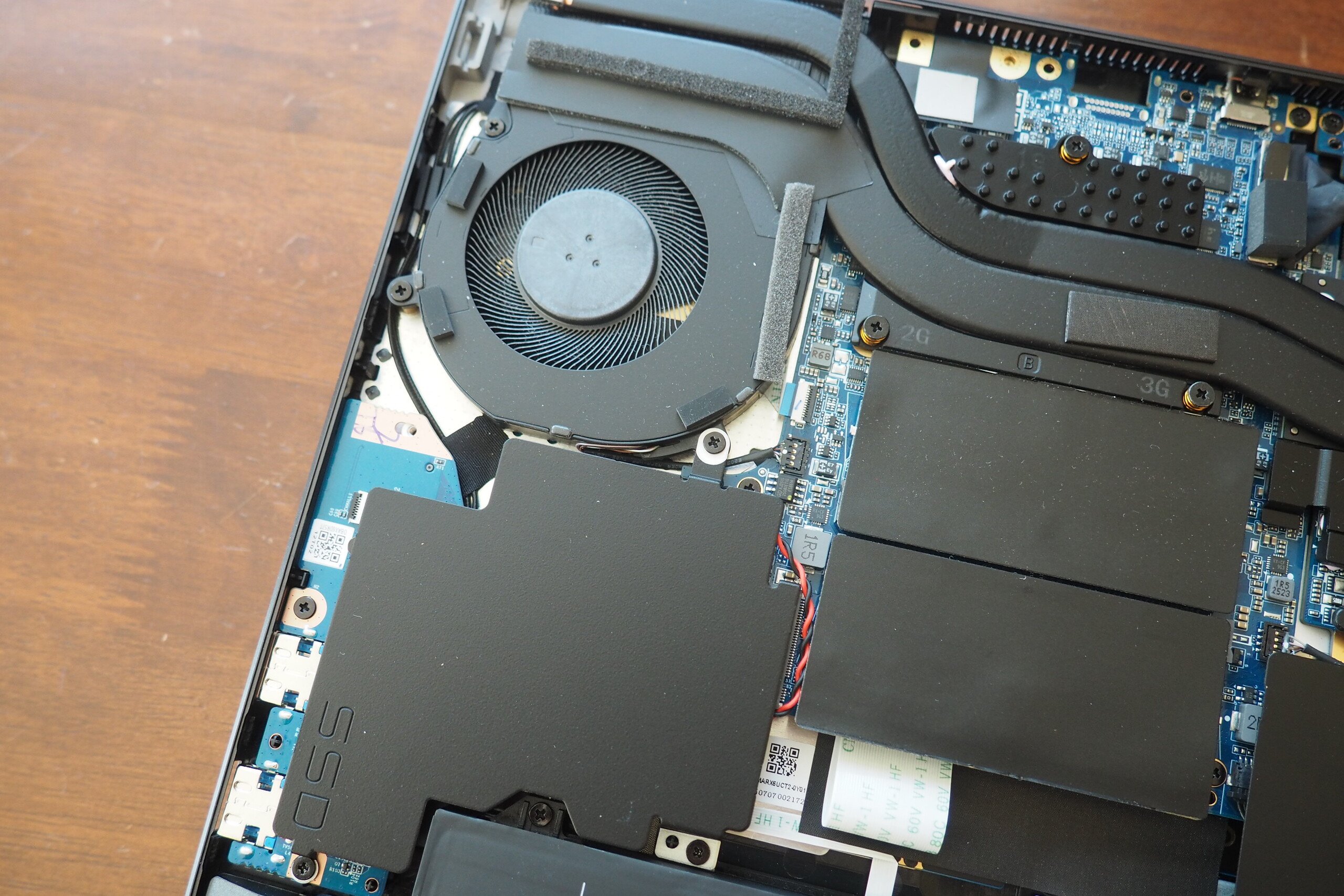 联发科 Wi-Fi 模块可提供不错的上传速度和下载速度。接下来是 FHD 网络摄像头,按照笔记本电脑的标准,它能提供相当清晰的图像,还包括一个物理隐私快门。卸下 10 颗十字头螺钉后,即可轻松进入内部;内部照片如下。