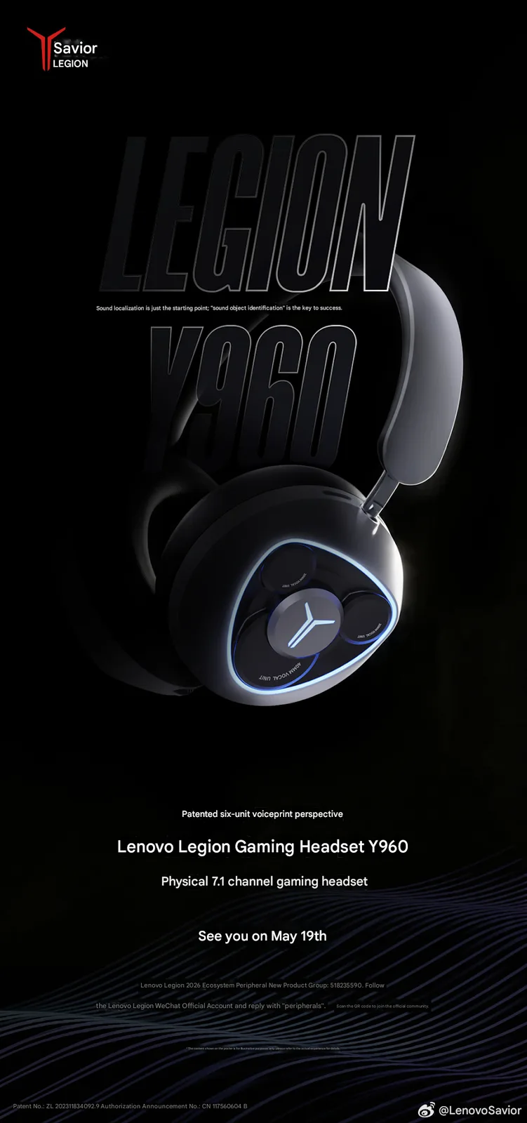不过,预告中提到这是一款 "物理 7.1 声道"游戏耳机,这意味着联想正专注于提供身临其境的音频体验。预告中还提到了 "六单元声纹透视专利",这很可能是指耳机对人声和对话的处理能力。