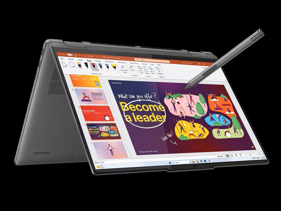EN→zh-CNOut of all the Lenovo Yoga laptops out there, there’s one that stands apart from the rest: the 7i 16. The 2023 convertible laptop delivers strong performance and a spacious, bright display with Dolby Vision support. It also checks off a lot of other boxes as far as features go. The fingerprint reader is easy to use for secure login and identification, there’s an included stylus, and it comes loaded with 16GB of fast DDR5 memory. This machine has a lot to offer buyers.