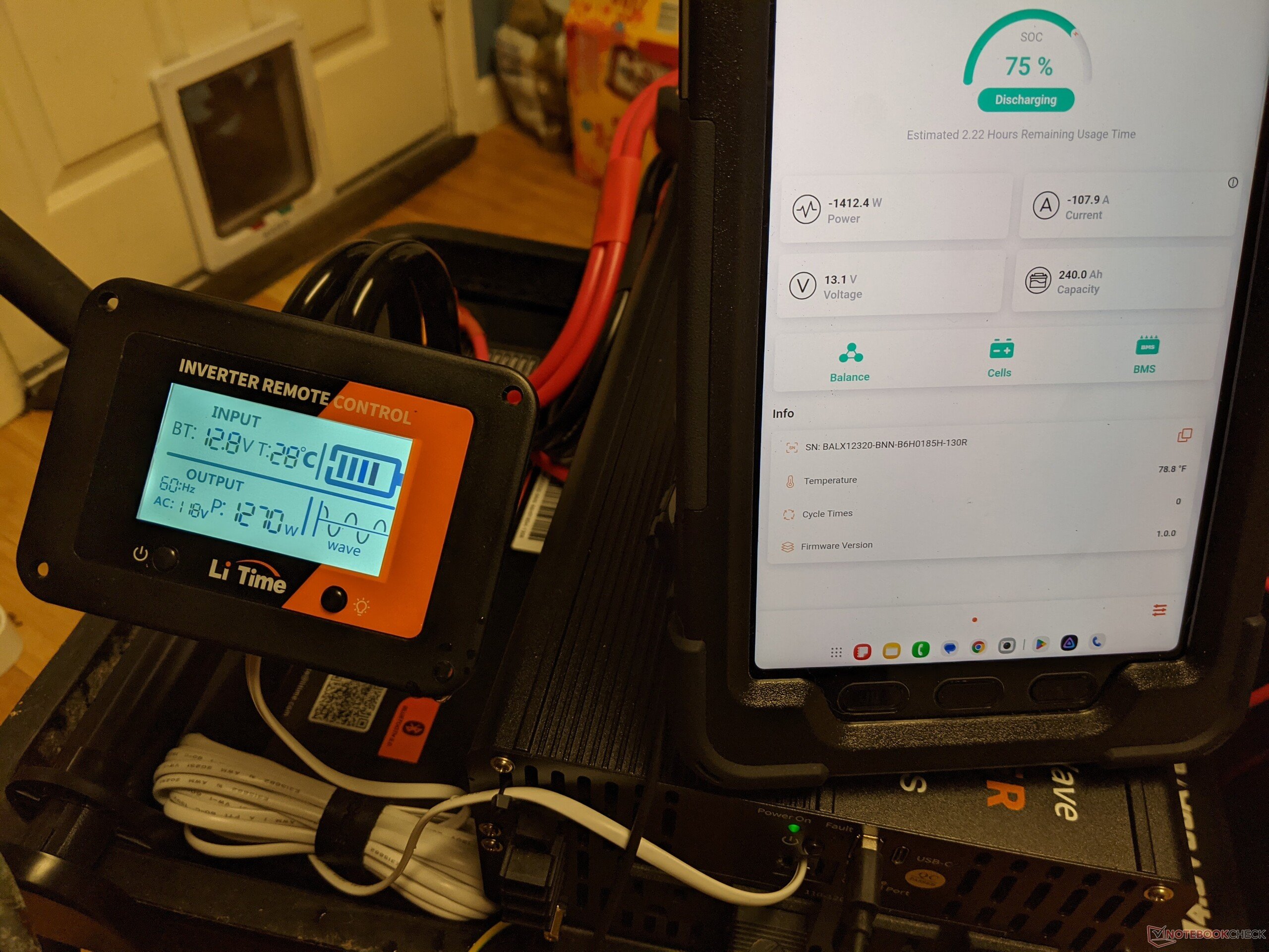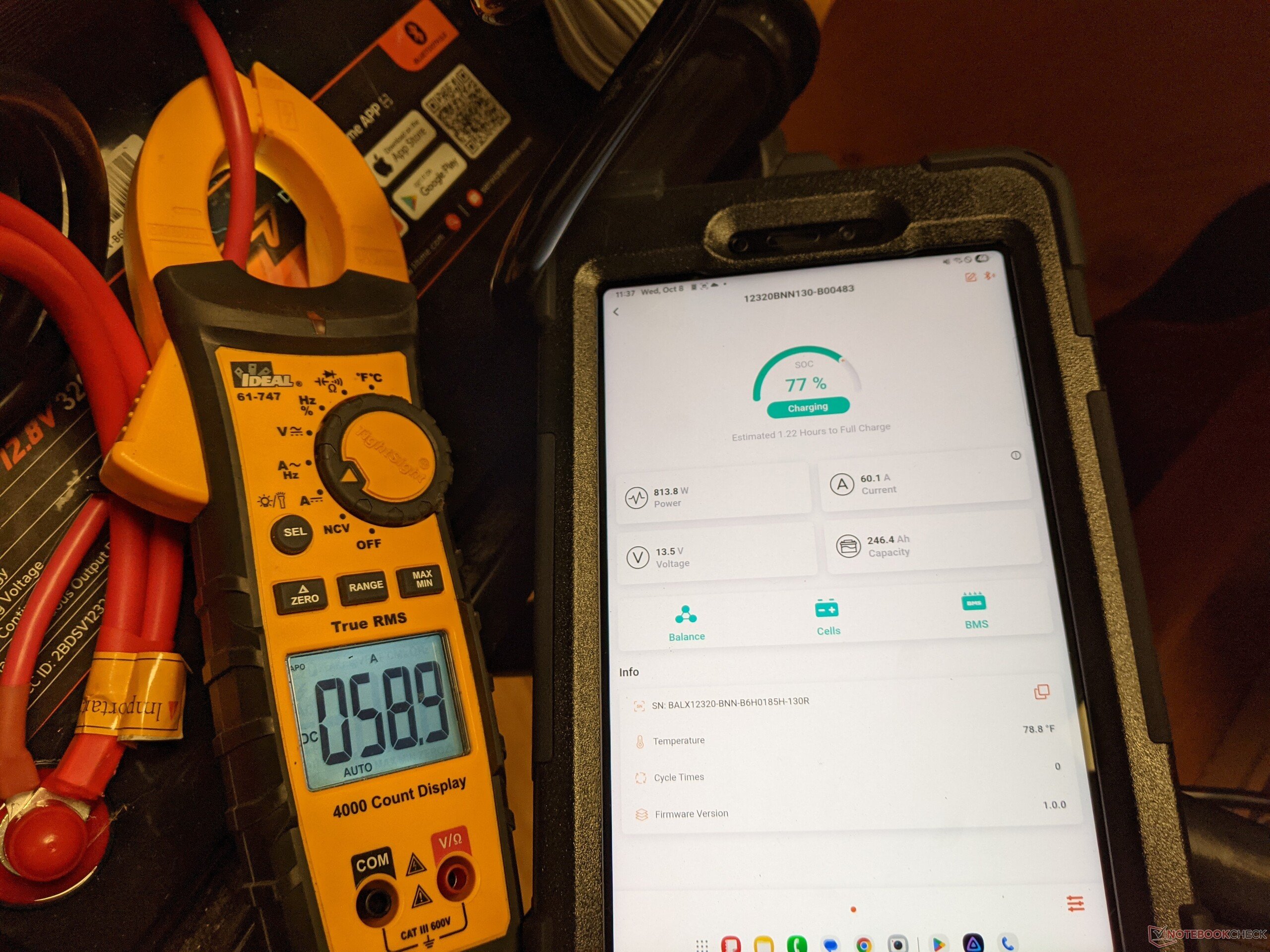 对于这款电池,测试主要集中在其户外/露营应用方面,测试其对宽工作温度范围的要求,以及逆变器输出大量瓦特的能力。不过,在实际测试之前,我们用安培钳读取了各种负载大小的读数,发现板载 BMS 能够向应用程序提供准确的读数和预计的正常运行时间。