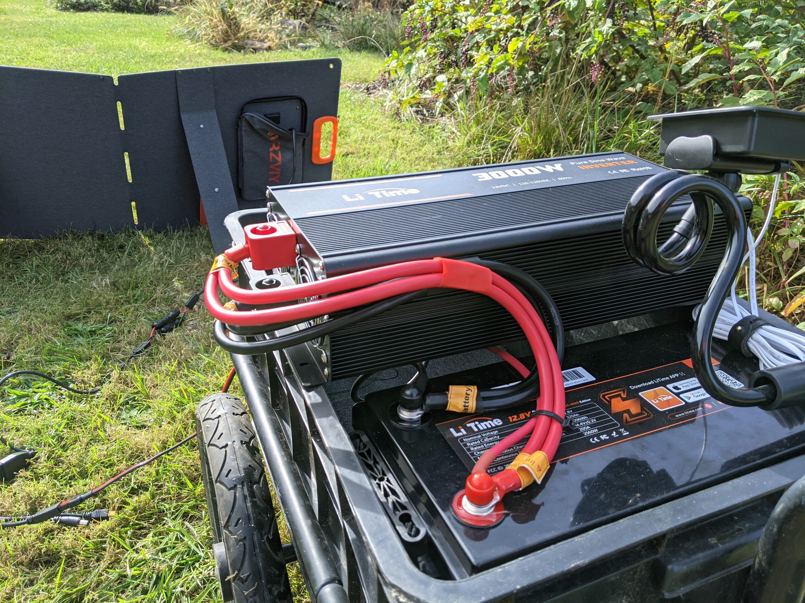 系统的布线也相当简单,指南上清楚地说明了如何将电池连接到逆变器和充电器。不过,在尝试安装太阳能充电控制器时,我们发现该设备没有附带任何连接到系统的电缆或硬件,这意味着必须订购。幸运的是,亚马逊上有 Power Pole 和 120V 安德森插头连接器可供选择。由于需要等待电缆到货,我们决定将两种充电方案分开,但需要注意的是,这两种方案都可以与系统连接,因为它们都具有防止损坏电池的功能。