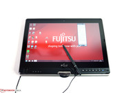 This is especially owed to the very accurately working digitizer by Wacom. With a maximum deviation of around 1 millimeter in the narrow peripheral zones the LifeBook T902 can climb to the top spot of our reviewed convertibles in this partial aspect. With the HP EliteBook 2740p we detected derivations of up to 3 millimeters and with the Lenovo ThinkPad X220T up to 2 millimeters. The latest series of the competition are not taken into account since we did not have the chance to review them yet. The high accuracy of the LifeBook T902 therefore also enables the use of picture editing. With the according zoom level it can compete with many graphics tablet. A big advantage of convertibles is that you can work on the notebook with multiple form factors to fit the style of work.