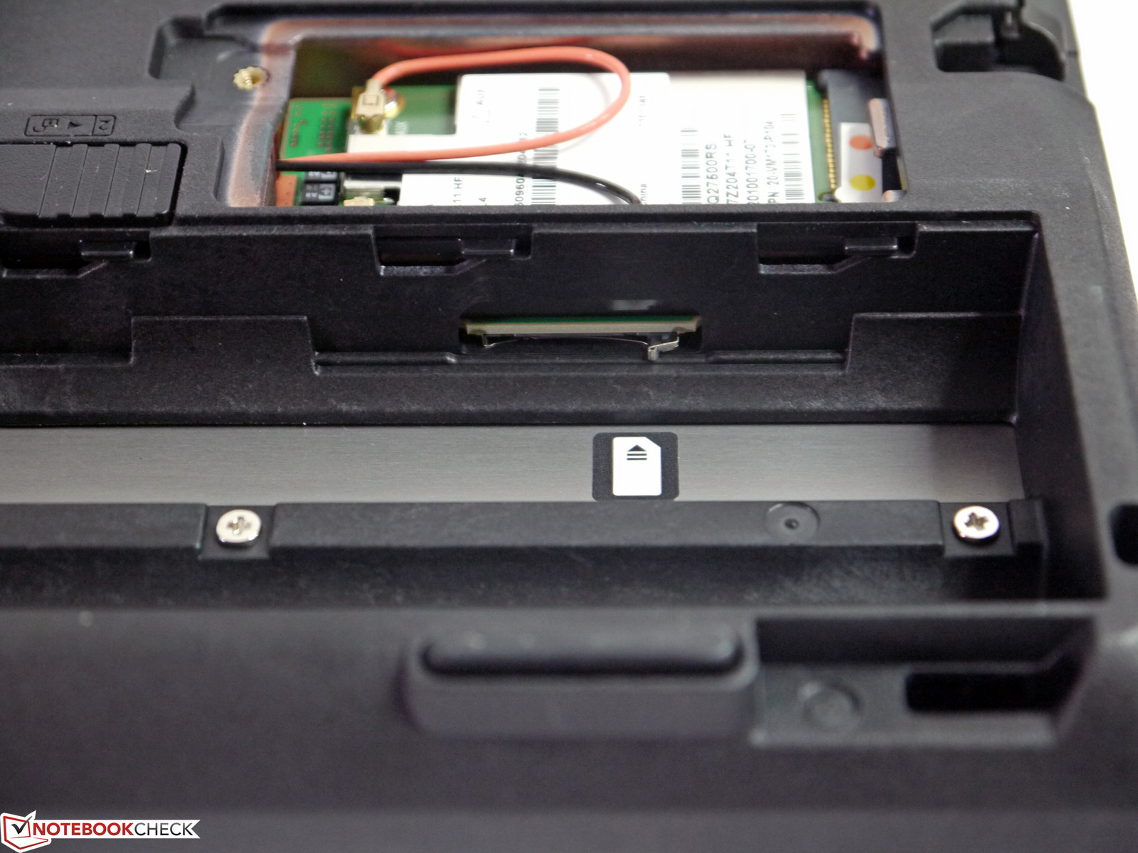 此外,我们的审查单位已经配备了Sierra公司的UMTS无线调制解调器(MC8305),从而使移动互联网连接。 SIM卡插槽旁边的UMTS模块,在电池槽中。另外还有配置LTE模块(Sierra Wireless的MC7710),但我们没能找到它在经销商。为了更好的连接质量,类似的惠普EliteBook 2740p的,折叠在一个天线上显示边缘的可能性。
