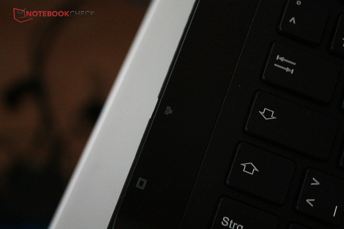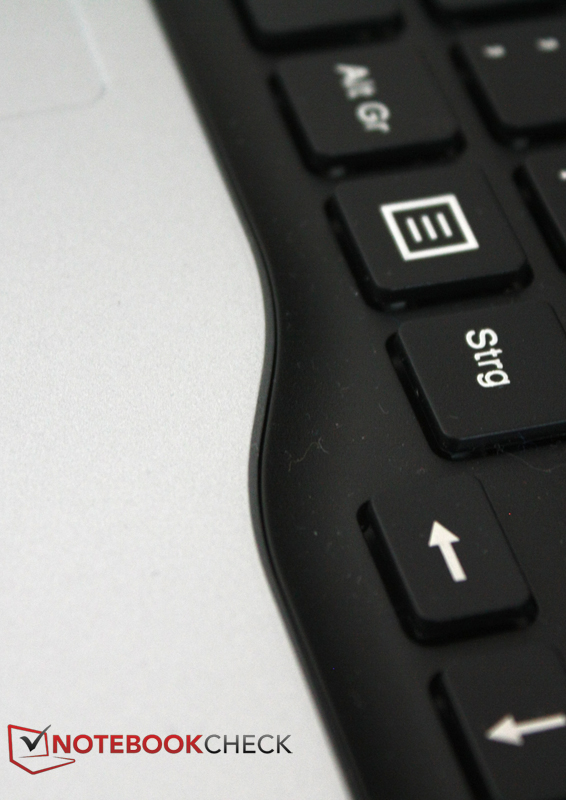 There is not much criticism with the stability of the notebook: The bottom can hardly be bent and the keyboard is surprisingly sturdy even above the DVD burner. This is a weak point for many other notebooks. Only the display can be bent a bit too much for our taste, which is also indicated by brightness distortions on the display. The pressure resistance of the cover from behind is not very good either.