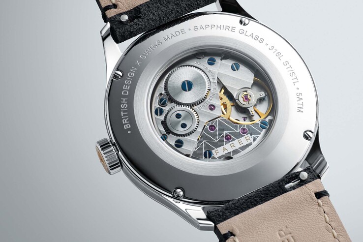 在 Lissom 的背面是 瑞士制造的La Joux-Perret D100 手动上链机芯,机芯顶部为双层防反光蓝宝石水晶玻璃表镜。瑞士制造的 La Joux-Perret D100 机芯频率为 3 赫兹,镶有 18 颗宝石,提供长达 50 小时的动力储备。此外,这款时计还具有 50 米(5 ATM)防水性能。 防水性能.