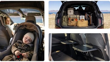 Gravity Touring 也保留了 Lucid 高配车型的典型豪华内饰。Lucid 为其配备了 34 英寸 Clearview Cockpit 6K OLED 显示屏、6 种高级真皮可选的 18 向前排按摩座椅、高级音响系统以及多个 100W USB-C 和 120V 电源插座。