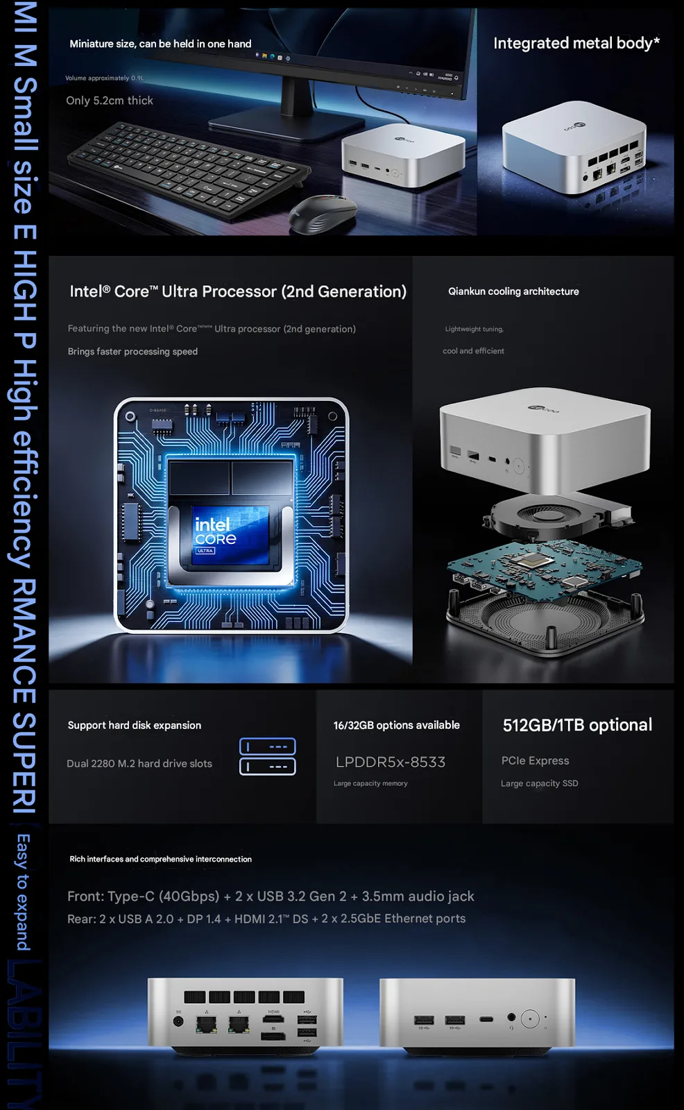虽然联想 最近推出了新款 Panther Lake 迷你电脑,而 Lecoo AI Mini Pro 则采用上一代产品 Lunar Lake。具体来说,该系统有三种 CPU 可供选择。