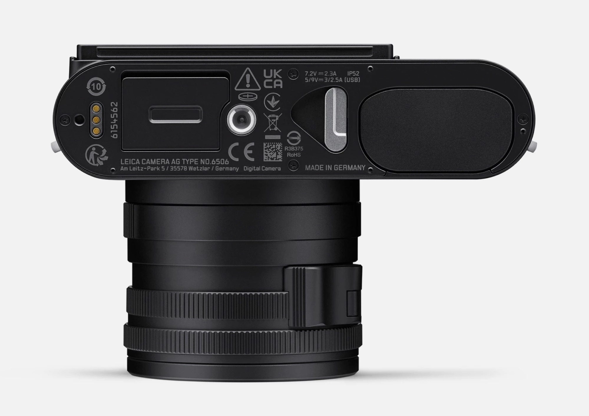 与 Leica M11 相比,这张照片上的设计有两个优点。首先,将电池从机身中释放出来的滑块可以在新的位置上更方便地操作,而快速释放板则固定在相机上。其次,徕卡为配件增加了三个金属触点。在徕卡 Q3 上,这些金属触点用于手柄,使相机可以在 Qi 充电板上进行无线充电。