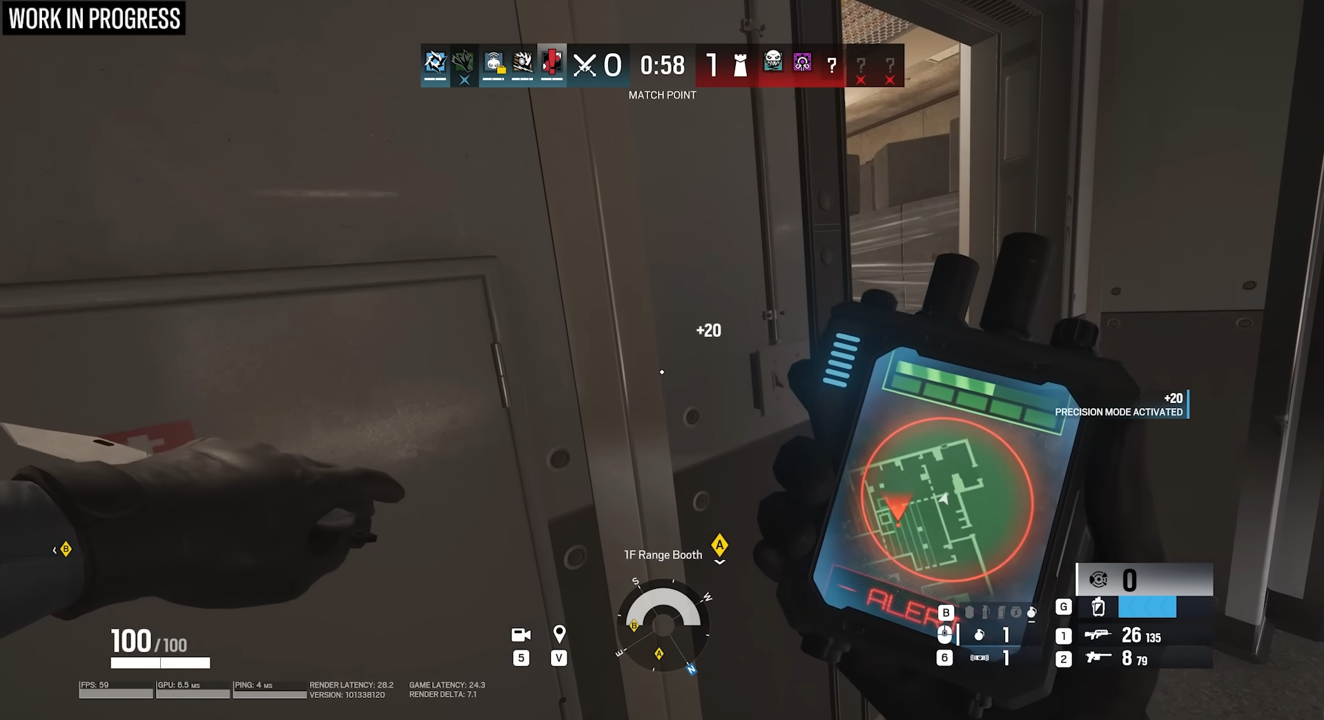 值得庆幸的是,游戏中加入了反击功能。防御者在被探测到时会收到通知,欺骗工具也能让雷达失灵:例如,Alibi 的 Prisma 诱饵可以看起来像真正的操作员,Vigil 可以隐藏起来,而 Mute 可以在干扰器范围内干扰设备的探测。这些都是强有力的情报,但并不是 "免费的胜利",也不能涵盖所有类型的摄像头。