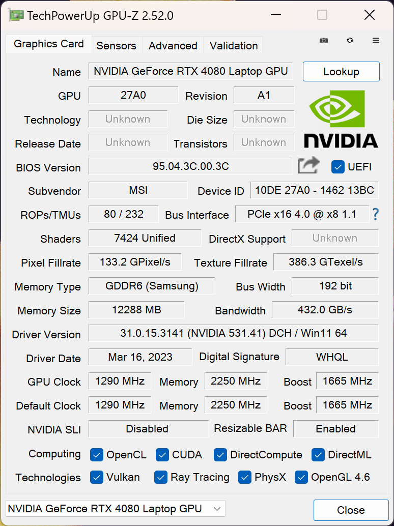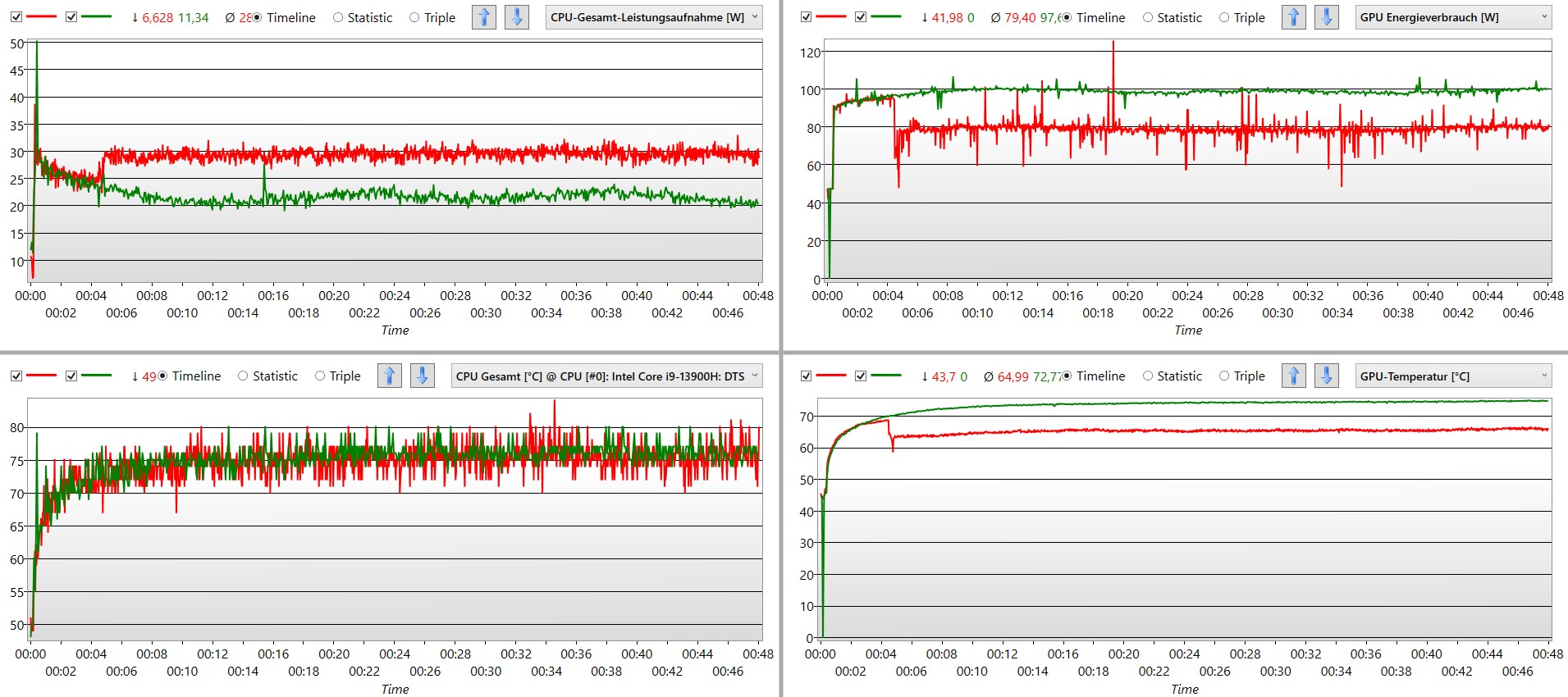 | MSI Stealth 17 Studio A13VH-014 i9-13900H, GeForce RTX 4080 Laptop GPU, Samsung PM9A1 MZVL22T0HBLB, Mini LED, 3840x2160, 17.3" | Gigabyte Aero 16 YE5 i9-12900HK, GeForce RTX 3080 Ti Laptop GPU, Phison ESR01TBMFCT, AMOLED, 3840x2400, 16" | HP Omen 17-ck2097ng i9-13900HX, GeForce RTX 4080 Laptop GPU, SK hynix PC801 HFS001TEJ9X101N, IPS, 2560x1440, 17.3" | Razer Blade 16 Early 2023 i9-13950HX, GeForce RTX 4080 Laptop GPU, SSSTC CA6-8D1024, IPS, 2560x1600, 16" | Aorus 17X AZF i9-13900HX, GeForce RTX 4090 Laptop GPU, Gigabyte AG470S1TB-SI B10, IPS, 2560x1440, 17.3" | Asus ROG Strix G17 G713PI R9 7945HX, GeForce RTX 4070 Laptop GPU, WD PC SN560 SDDPNQE-1T00, IPS, 2560x1440, 17.3" | Average NVIDIA GeForce RTX 4080 Laptop GPU | Average of class Gaming | |