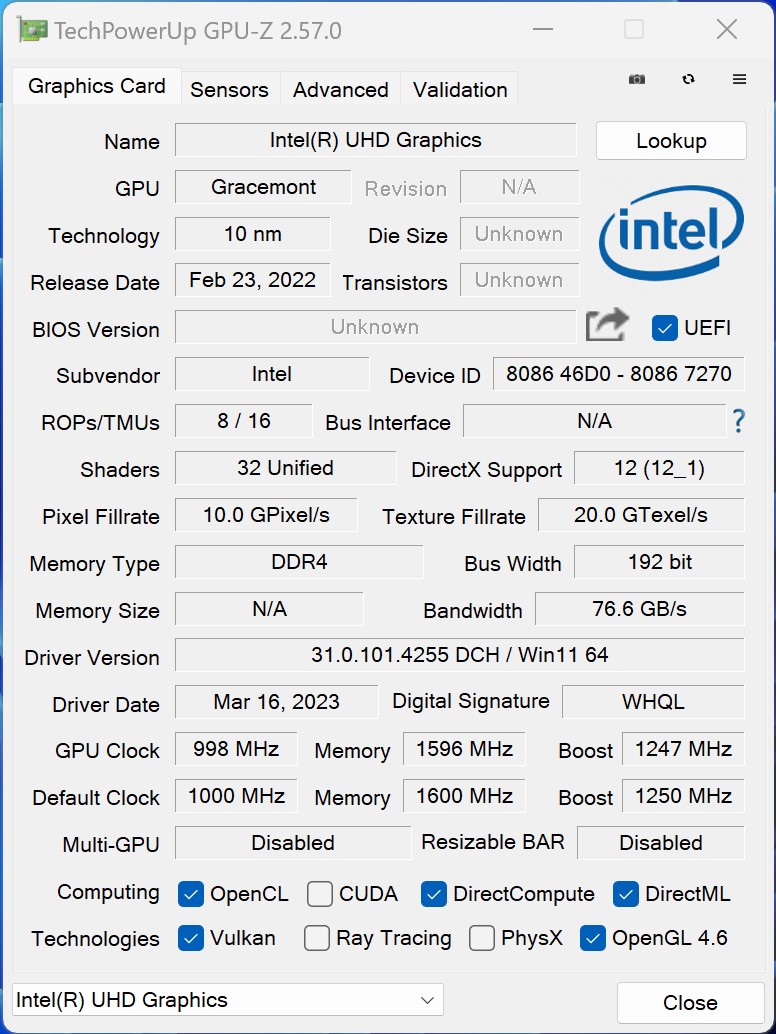 英特尔酷睿 i3-N305 iGPU 的 3D 性能有限 英特尔酷睿 i3-N305只适用于要求不高的游戏。英特尔UHD Graphics 应该也能应付休闲游戏或浏览器游戏。使用 AMD Radeon 780M的性能明显更高,例如在 Minisforum EliteMini UM780 XTX.