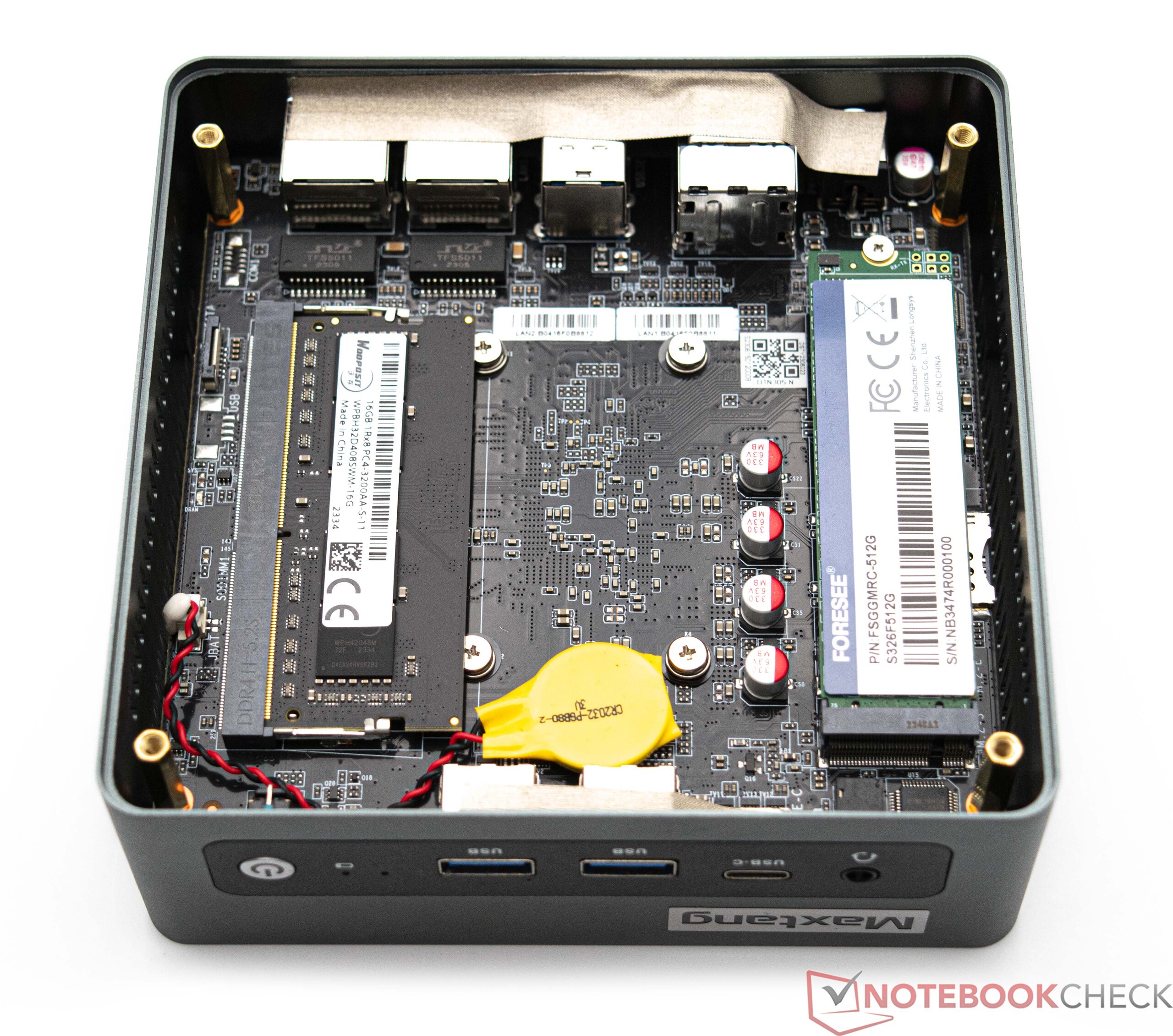 Maxtang MTN-ALN50的测试样品中安装了一块来自Foresee的512 GB固态硬盘。不过,安装的型号只能以 SATA 速度工作,这在基准测试中也有明显体现。不过,传输速率仍足以满足日常使用。在压力测试中,我们没有发现任何温度问题。Maxtang MTN-ALN50 还可以配备第二个大容量存储设备。所需的连接适配器和插座已包含在供货范围内。