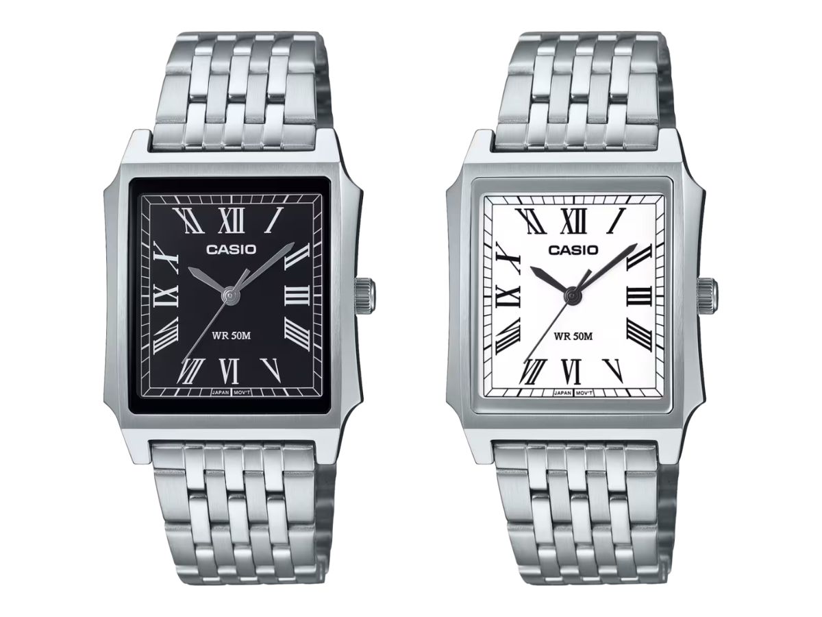 在美国,卡西欧最近发布了MTPB190D-1BV和MTPB190D-7BV.这两款手表每只售价 110 美元,在该品牌的网上商店有售。这两款手表均采用银色外壳,搭配七排金属链节表带。不过,MTPB190D-1BV 采用黑色表盘搭配银色指针和刻度,而 MTPB190D-7BV 则采用白色表面搭配黑色装饰。