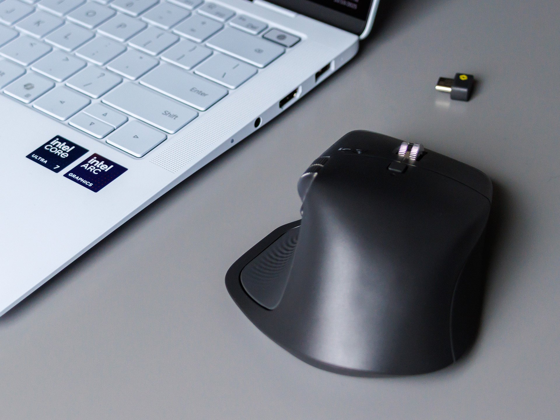 MX Master 4 的设置简单快捷。鼠标可通过蓝牙或随附的 Logi Bolt USB-C 接收器连接,后者可提供稳定、安全的无线连接,传输距离可达数米。用户最多可配对三台设备,并可通过鼠标底部的按钮在三台设备之间轻松切换。