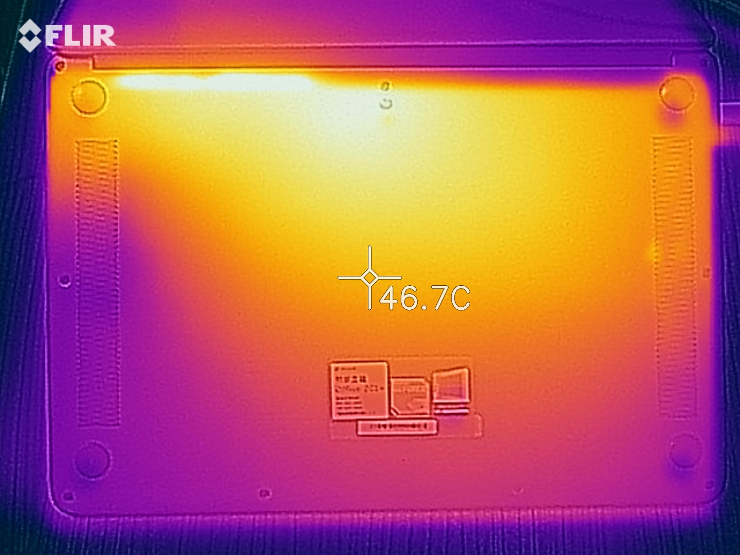 (-) The maximum temperature on the upper side is 45.6 °C / 114 F, compared to the average of 35.9 °C / 97 F, ranging from 21.4 to 59 °C for the class Subnotebook.