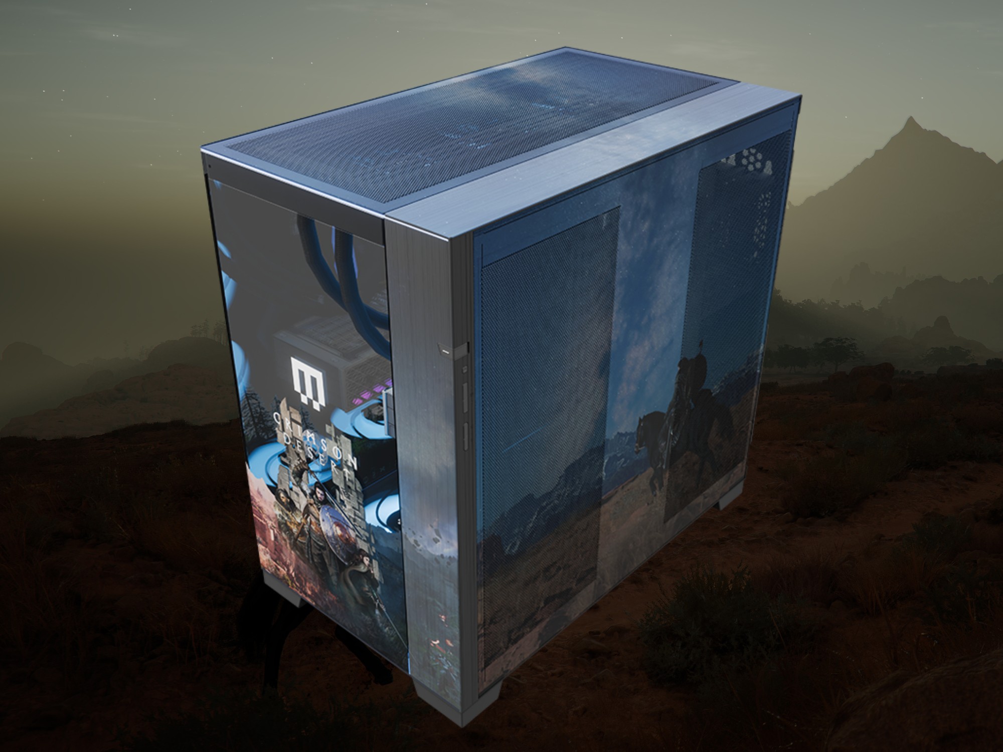 关于 深红沙漠》上映日期, 的宣布了一款 预制 PC的预制 PC,以纪念这款令人期待的开放世界游戏。经过重新装饰的机箱的多个侧面上都有艺术品,以纪念英雄克里夫和派维尔的广阔风景。超过的系统要求的系统要求,该台式机搭配 AMD Ryzen 7 9850X3D CPU与 RX 9070 XT显卡。
